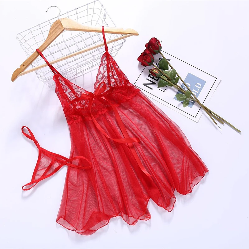 Summer Shuchang Women's Bra Pajamas Sexy Transparent Fishing Net Bodysuit Costume Sex Hollow Out Lace Doll Exotic Mini Skirt Set