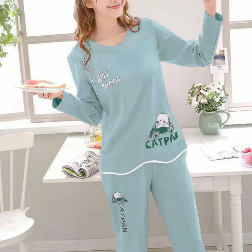 Name | Casual Two-piece Suit Women Pajama Set Cozy Women's Cartoon Rabbit Pajama Set Stylish Round Neck Top Elastic for Fall/winter |