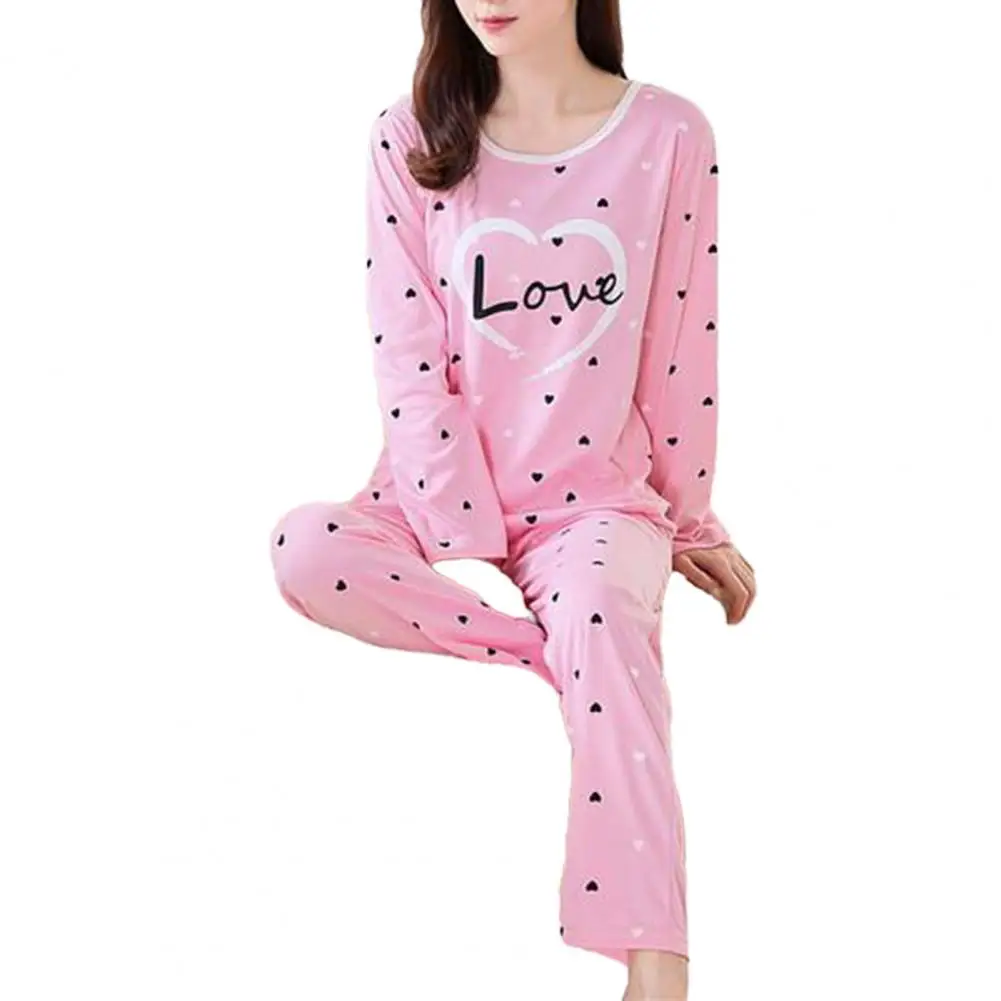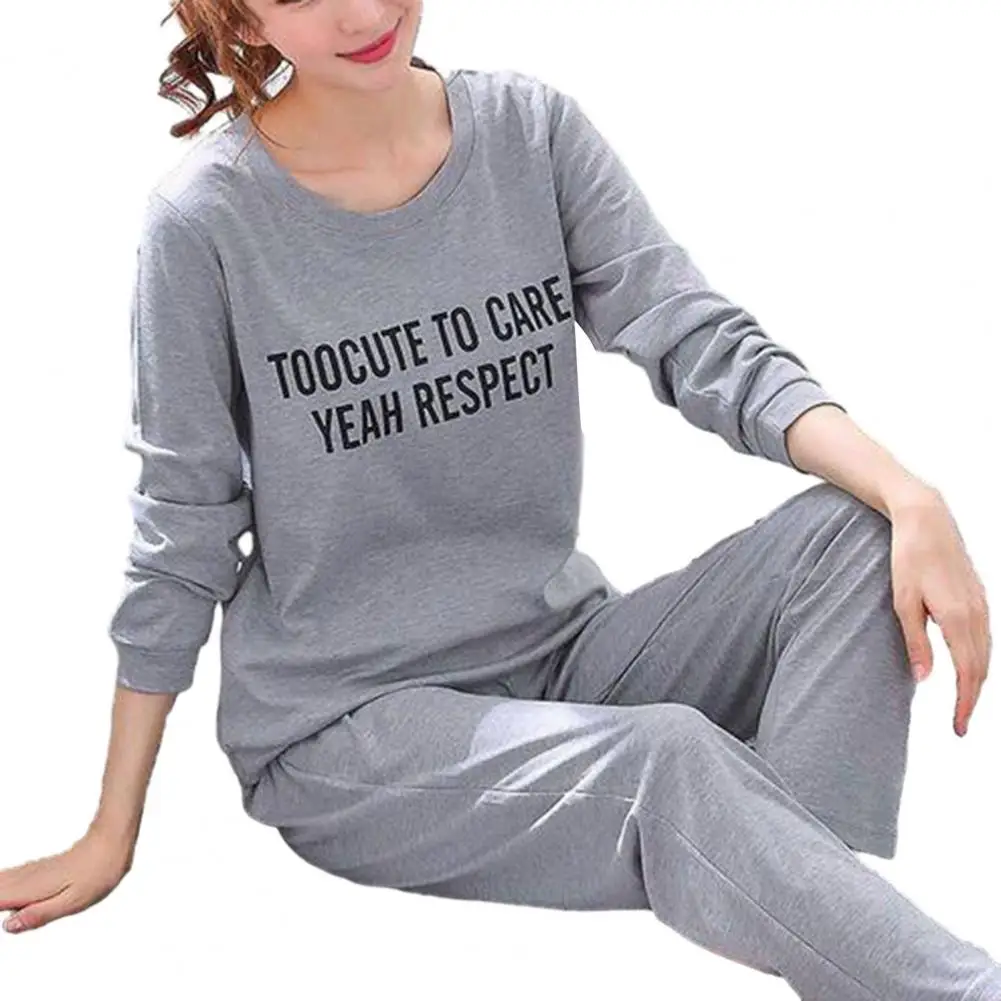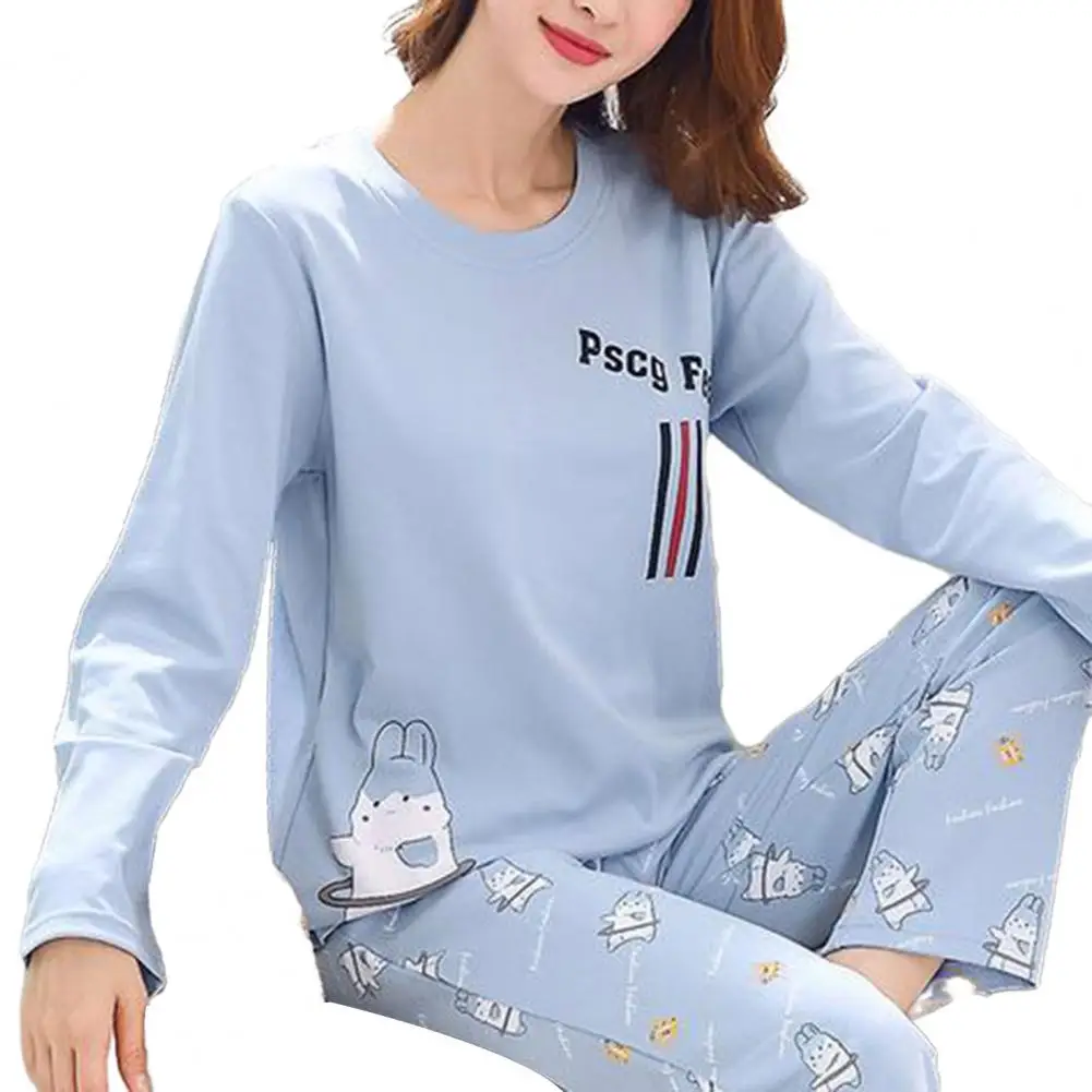 Soft T-shirt Trousers Set Cozy Women's Cartoon Rabbit Pajama Set Stylish Round Neck Top Elastic Waist Pants for Fall/winter