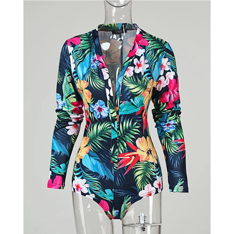 Women Jumpsuit Pajamas Sexy Deep V Neck Long Sleeve Bodysuit Bodycon Stretch Printed Button Short Romper Ladies