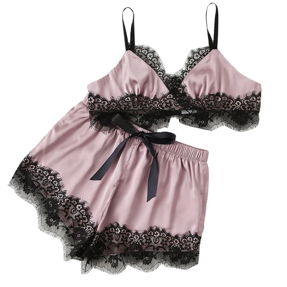 Women Sexy Spaghetti Strap Pajama Set Lace Sleeveless Sleep Shorts Pajamas Set Suit Lingerie Sexy Sleepwear Nightwear