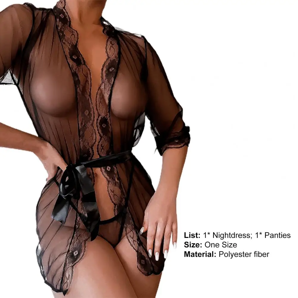 Name | Lady Sleepwear Lace G-string Thong Sex Clothes Babydoll Erotic Transparent Dress Black Mesh Floral Lace Sexy Nightclothes |