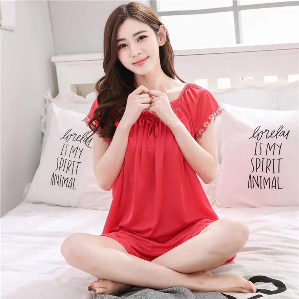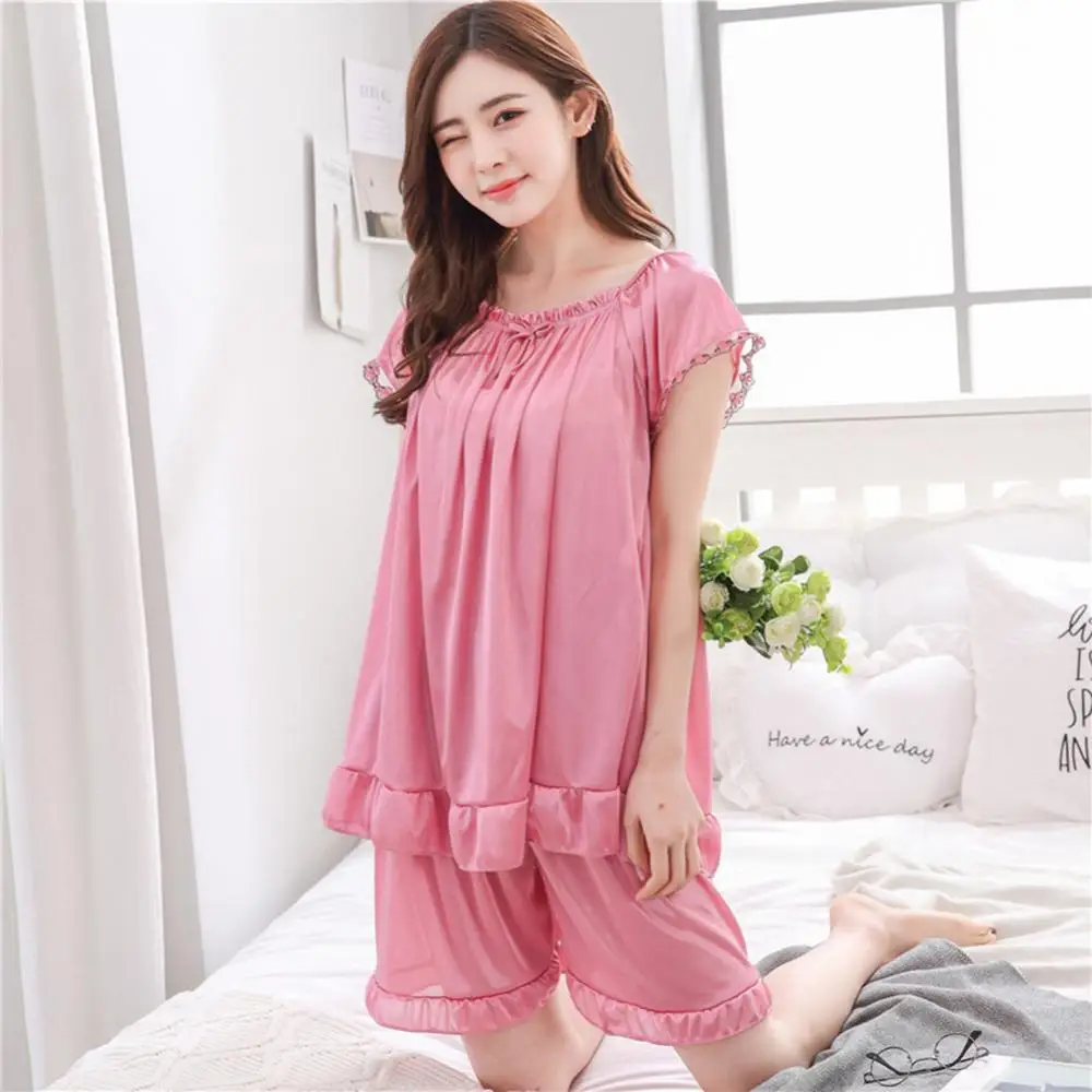 10 Color Pajamas Set Women Solid Color Breathable Women's Loose Pajamas Short Sleeve Blouse Top Shorts Sleepwear Pajama Set