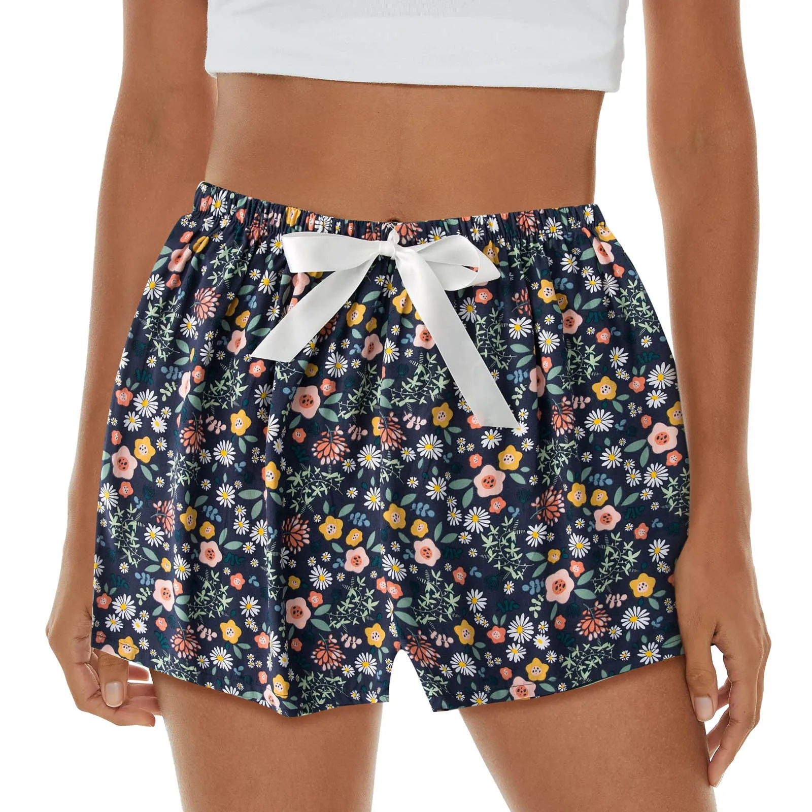 Women Pajamas Soft Sleep Shorts Floral Printed Shorts Elastic Waist Loose Bottoms Home Pants Comfy Lounge Bottom Lounge Shorts