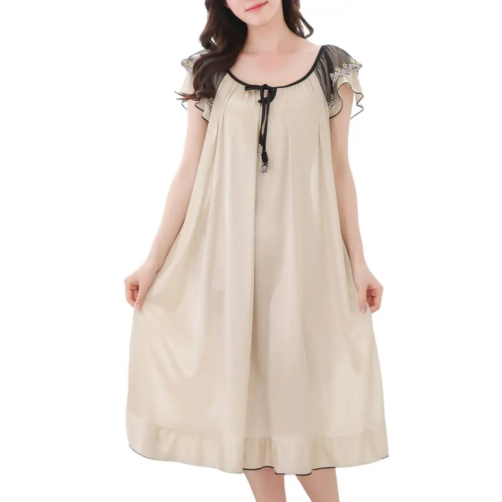 Name | Fashion Women Smooth Long Dress Sleepwear Comfy Pajama Dress Women Smooth Satin Ruffle Hem Summer Nightdress Home Wear |