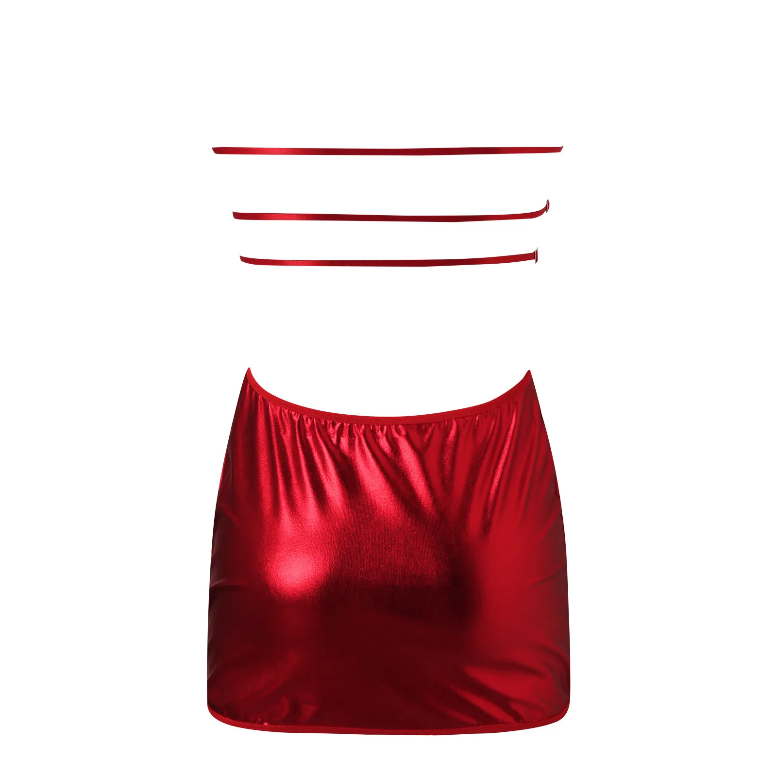 Sexy Pu Leather Nightdress Women Strapless Bodycon Night Dress Solid Color Lingerie Sleepwear Nightie Teddy Babydoll With Thong