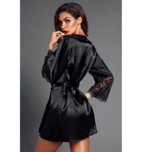 2019 Fashion Womens Solid Patchwork Lace Sleepwear V Neck Short Babydoll Nightdress The Quarter Kimono Robe Sexy