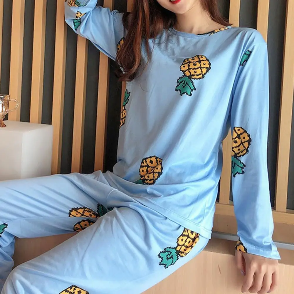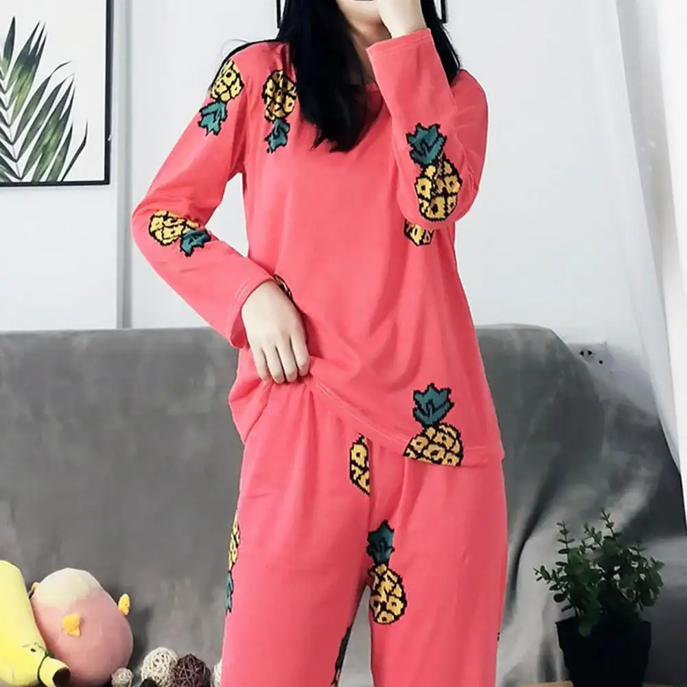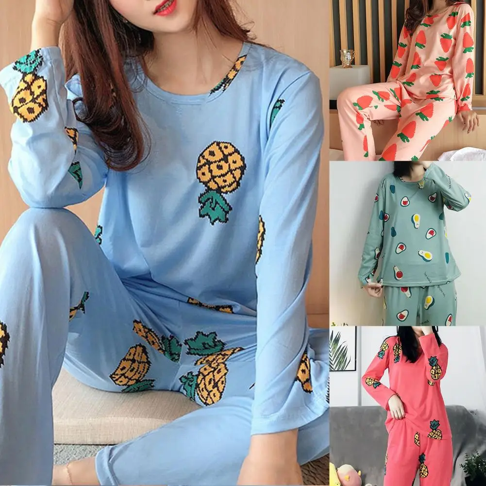 Fashion Pajamas Set Breathable Cartoon Patterns Green Avocado Lady Nightclothes Kit Winter Pajamas Set Fine Workmanship