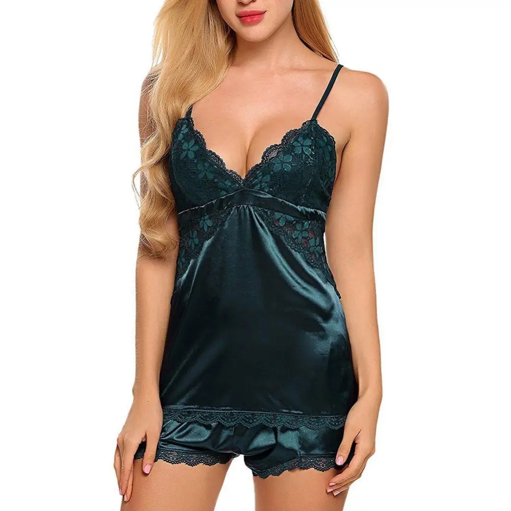 Sexy Female Nightdress V Neck Sleepdress Adjustable Straps Backless Camisole Elastic Mini Dress Sleepwear Silk Pajamas