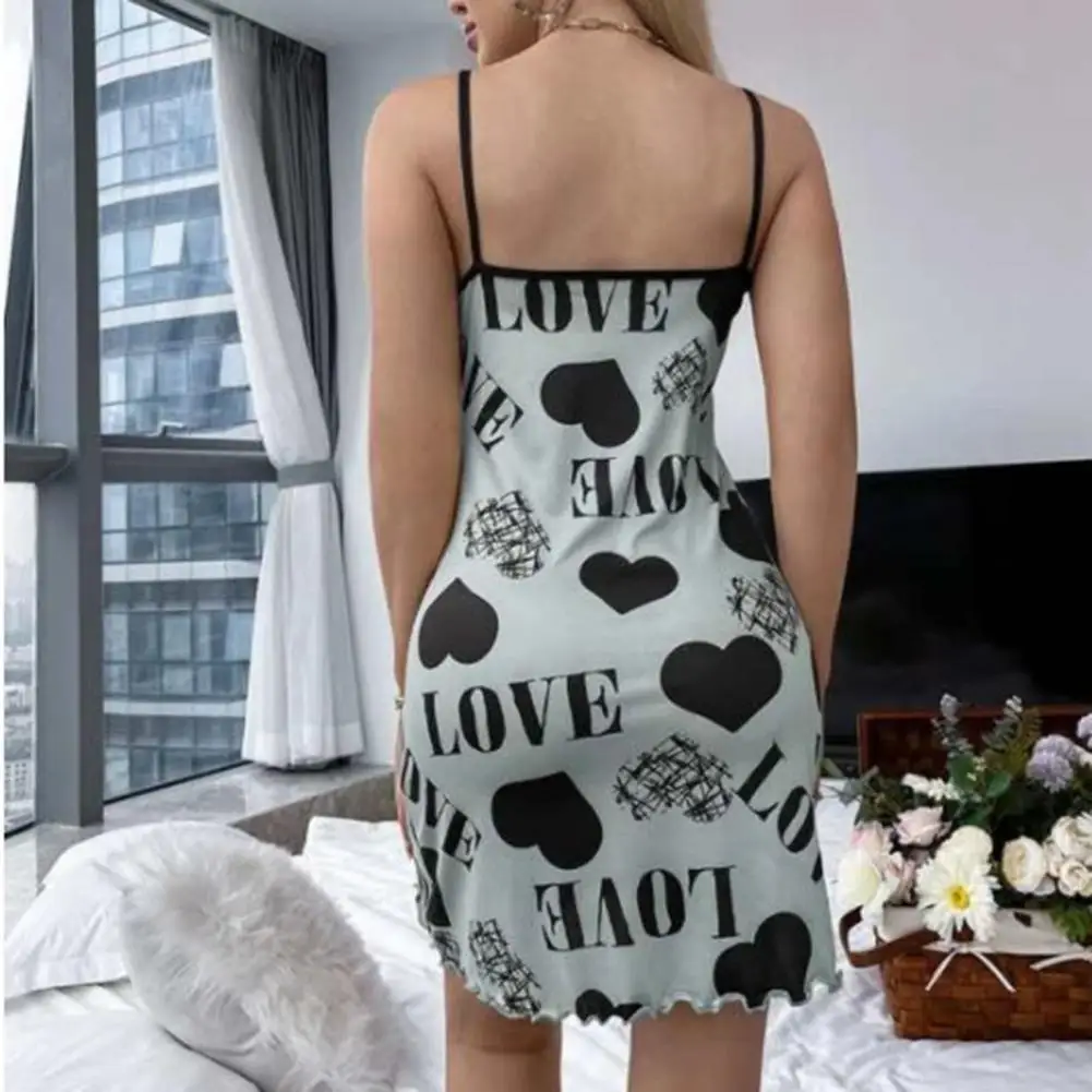 Name | Women Nightdress Heart Print Letter Pattern Sleeveless Sleepwear Backless Sleeping Scoop Neck Above Knee Women Nightgown |