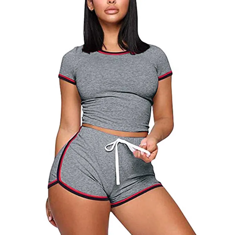 Name | 2020 New Women 2Pcs Set Summer Ladies Striped Short Sleeve Slim Tops&Shorts Two Piece Sportwear Homewear Casual Sports Tracksuit |