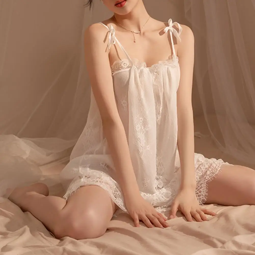 Women Summer Lace Spagehtti Strap Pajamas Female Nightdress Solid Color Home Dress With Pad Sexy Nightgowns Plus Oversize M-3XL