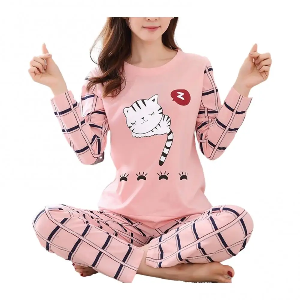 Name | Winter Cute Cartoon Cat Print Pajama Set Women Two-pieces Long Sleeve Sleepwear |