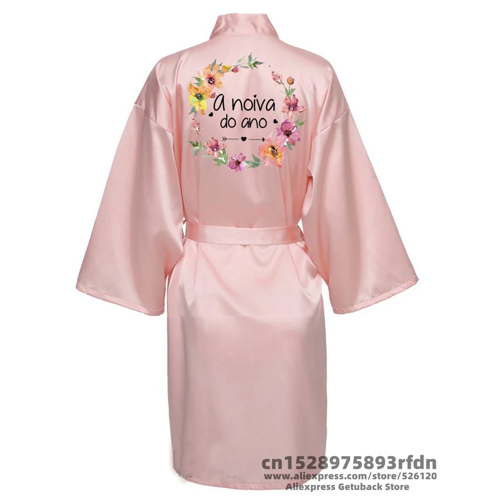 Women Silk Satin Short Night Printing Robe Kimono Robe Fashion Bath Robe Sexy Bathrobe Femme Wedding Bride Bridesmaid Robe SP245