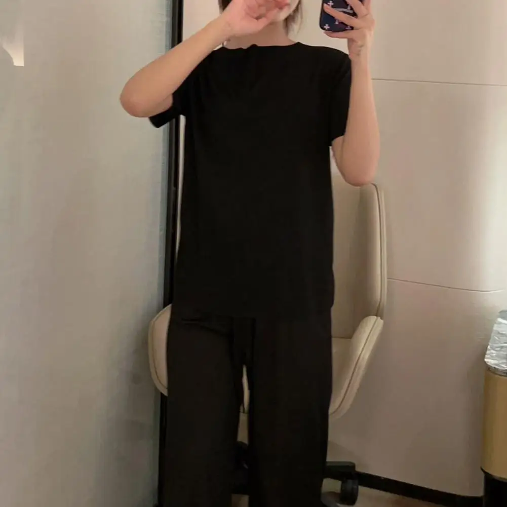 Name | Lounge Sleepwear Breathable Women Loungewear Colorfast Relaxing Trendy Women Solid Color Ice Silk Sleepwear Set |