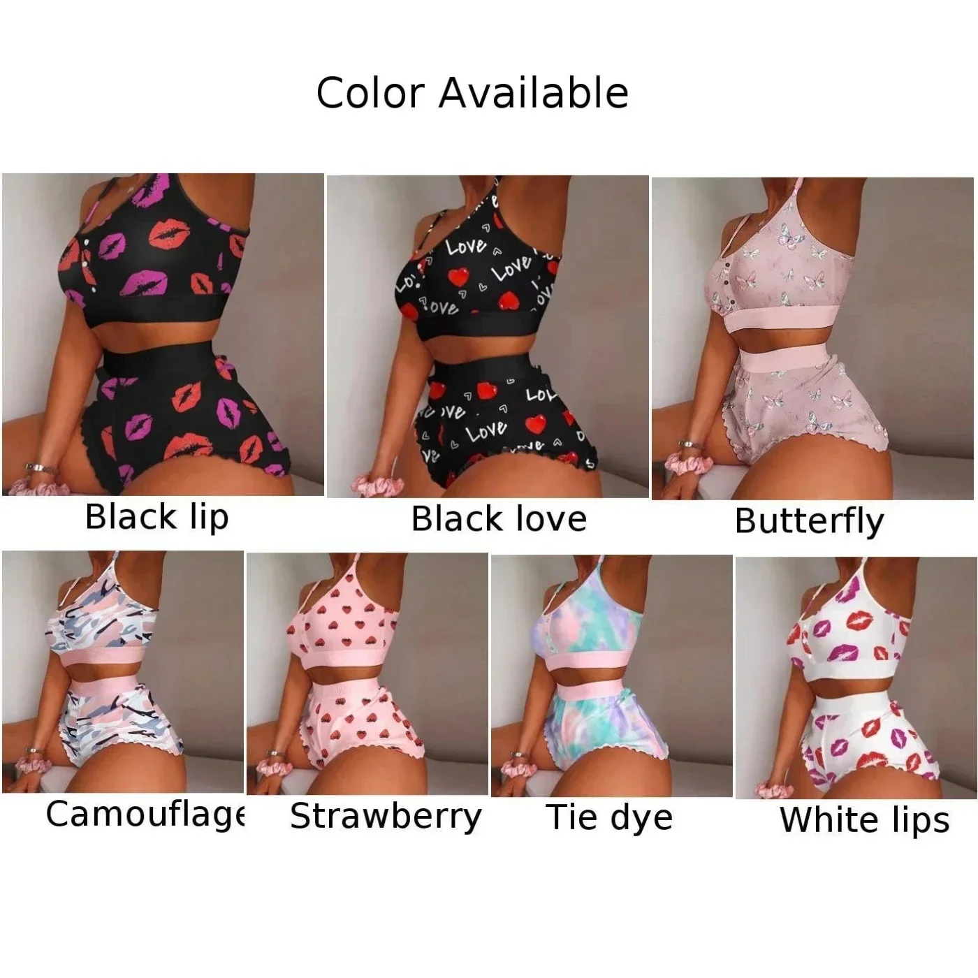 Trendy Women's Fashion Print Pajama Set including Vest Bra Top and Short Sleepwear for a trendy and fashionable sleep experience