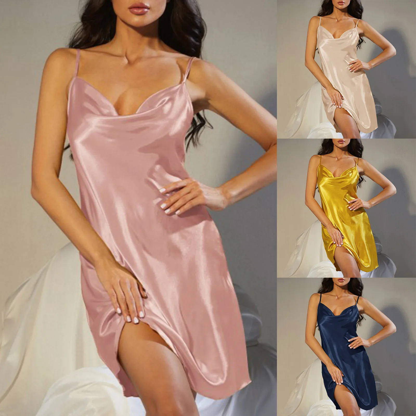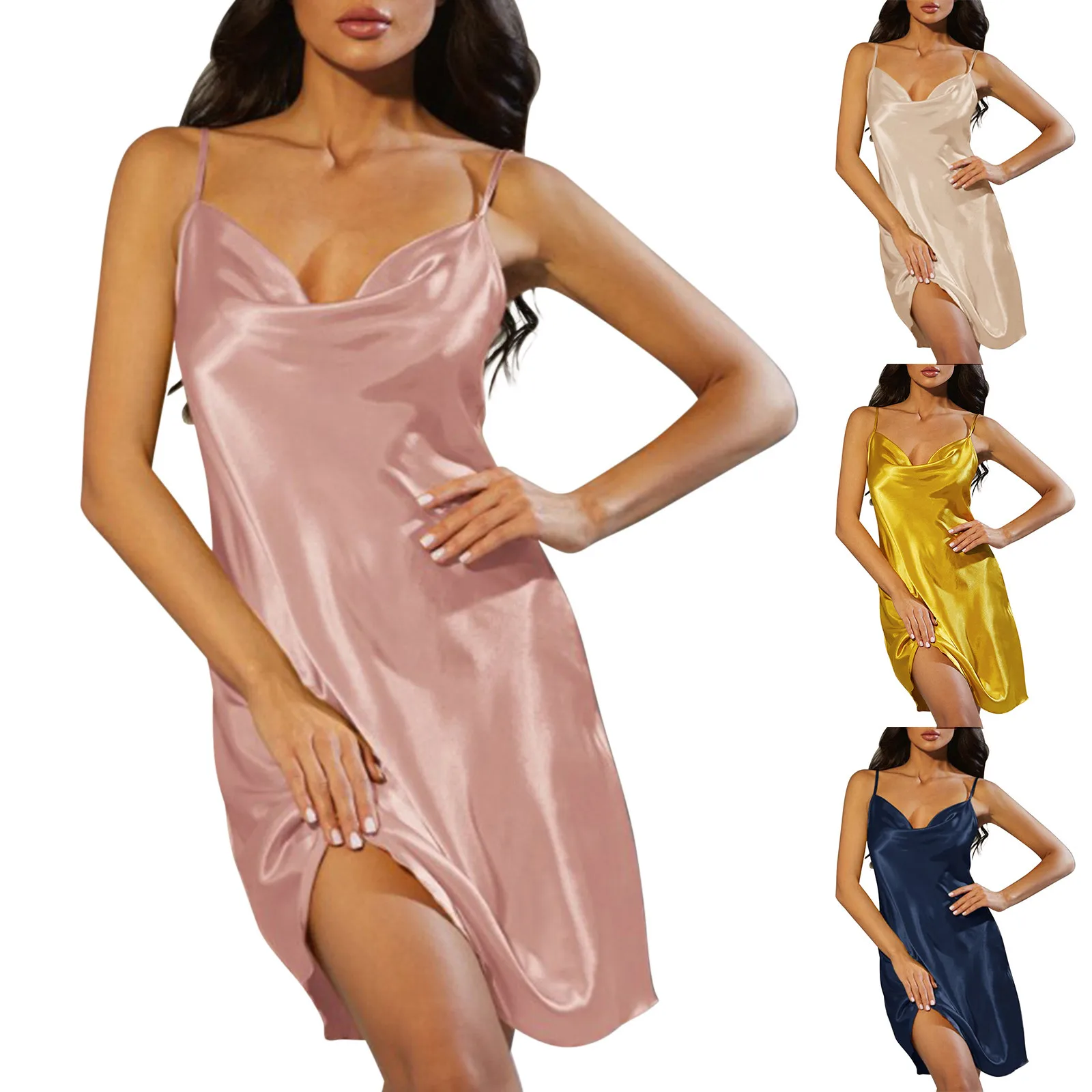 Name | Women's Summer Comfortable Sling Style Nightgown V-Neck Ice Silk Sling Dress 2024 Sleepwear Thin Breathable Dress For Women |