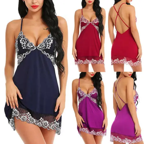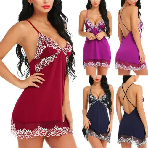 Name | 3 Colors Sexy Women Silk Lace Sleeveless V neck Nightdress Nightgown mini short Sleepwear 2019 New Arrival |