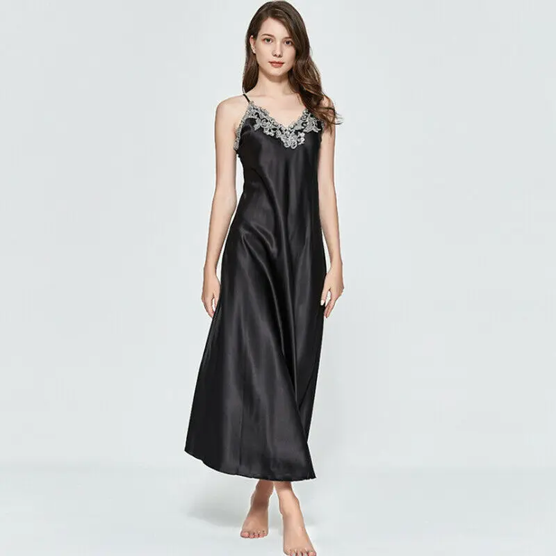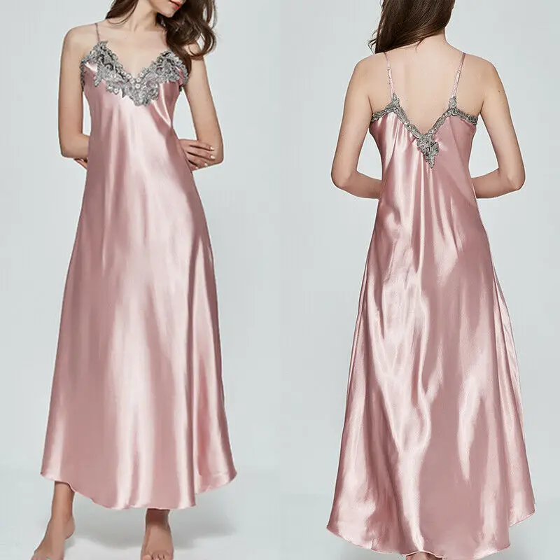 Women Nightwear Silk Satin Lingerie Sleepwear Long Maxi Dress Robe Gown Plus Size