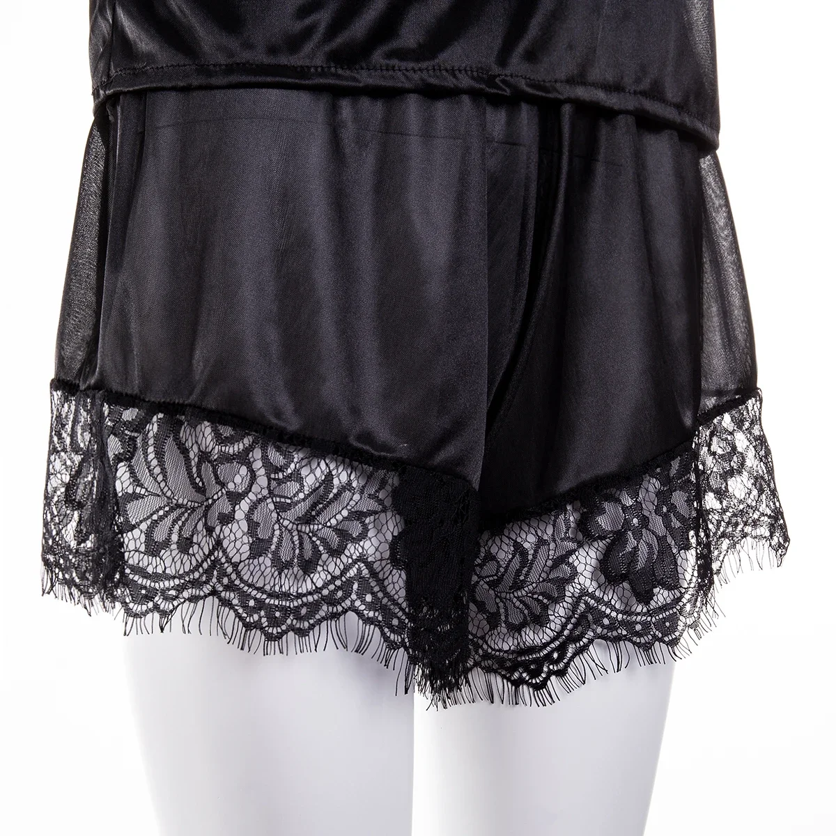 Name | Women's Satin Lace Sleepwear Set, Elastic Lace Suspender Shorts, Sexy Strap Pajama Set, Ladies Lingerie, 2Pcs |