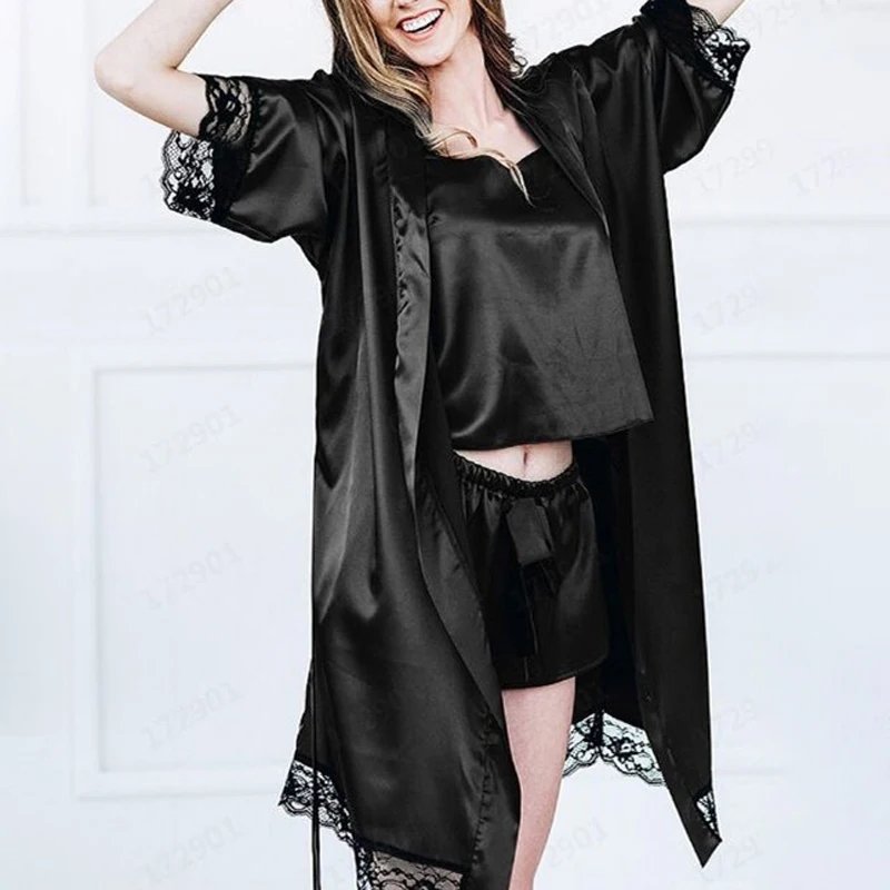 2pcs Pijamas Sets Women Floral Print Pajamas Set Wire Lace Bra Camisole Panty And Robe Set Female Sexy Sleepwear