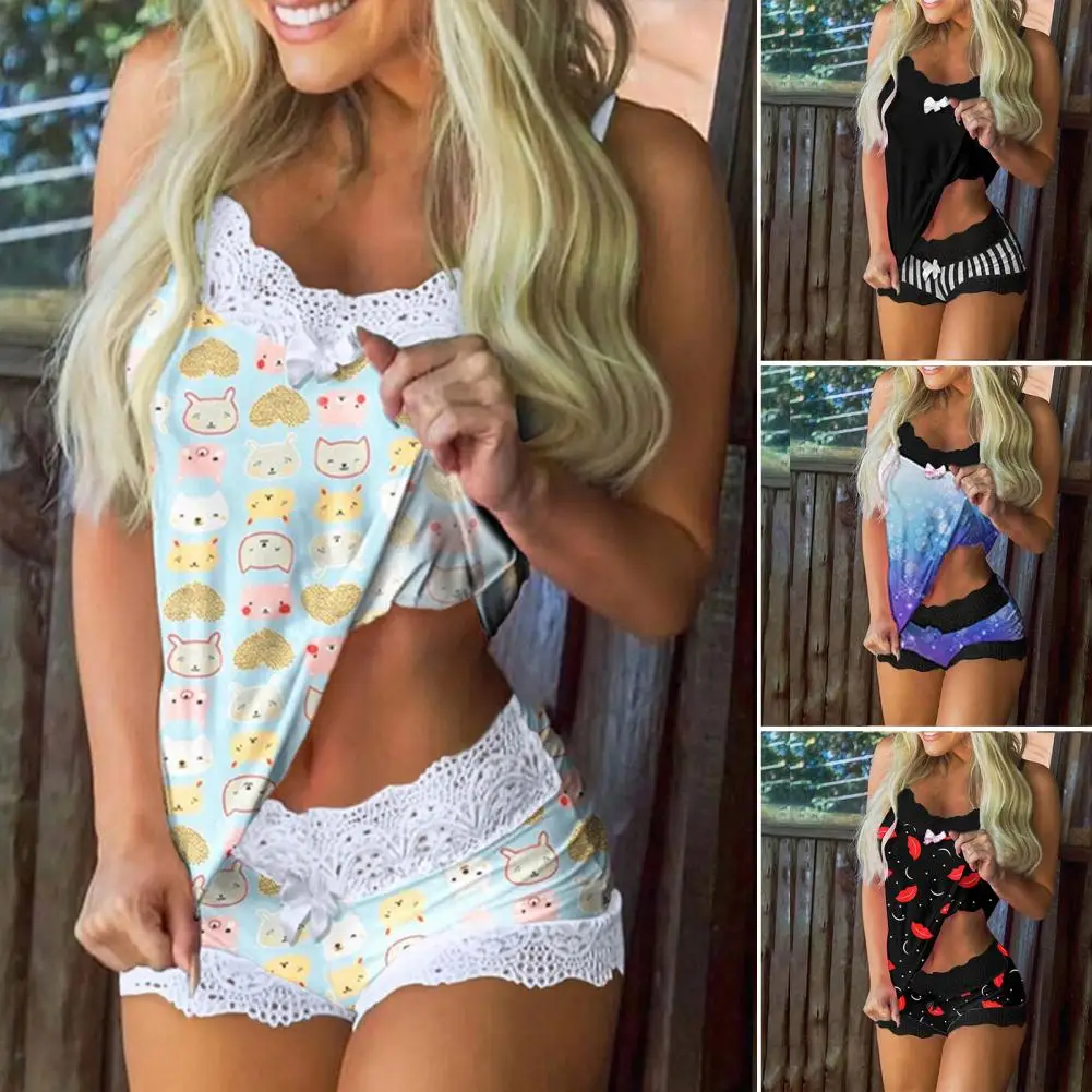 1 Set Nightwear Set Cartoon Animal Camisole Shorts Suspenders Bow-knot Sleepwear Set