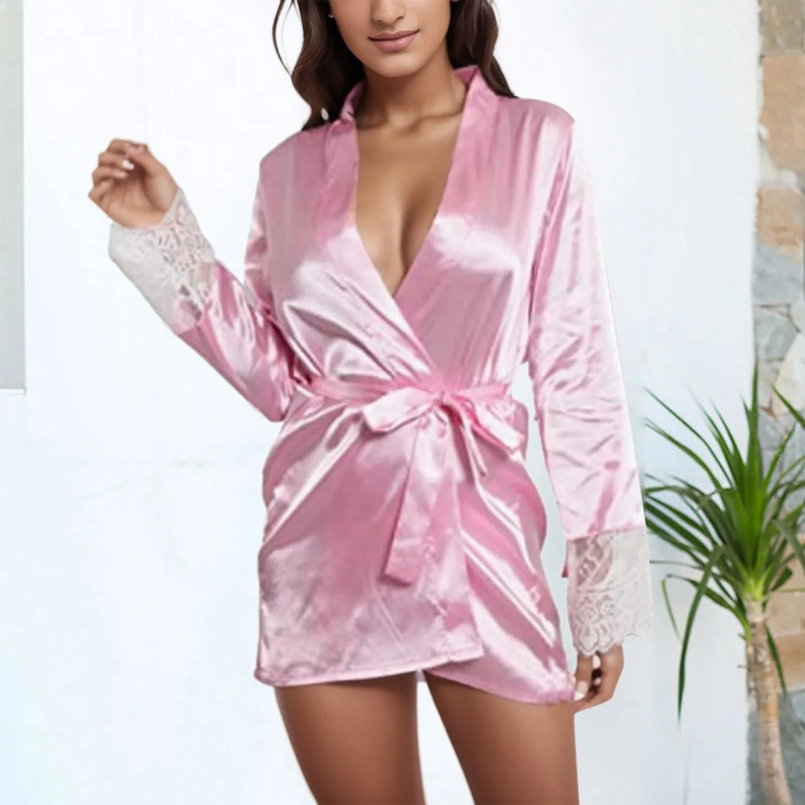 Name | Women Sexy Silk Dress Lace Satin Silk Robes For Women Sleepwear Lace Up Belt Robe Nightwear Women Sexy Nightdress Nightwear |
