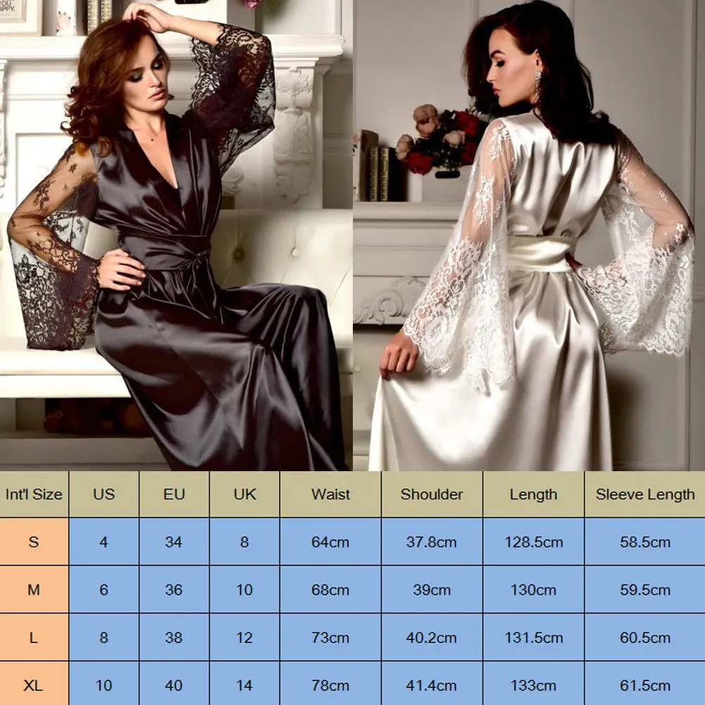 Name | Womens Sexy Silk Satin Deep V Bathrobe Robe Lingerie Sleepwear Nightwear Babydoll Robe Underwear Night Dress Sleepdress |