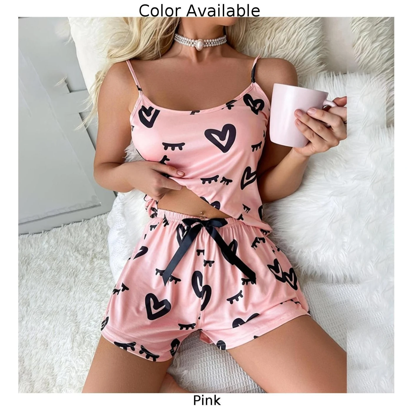 Name | Women Lingerie Set Love Print Cute Lingerie 2 Pieces Satin Sliky Sleepwear Smooth Top Loose Shorts Thin Casual Pajama New |