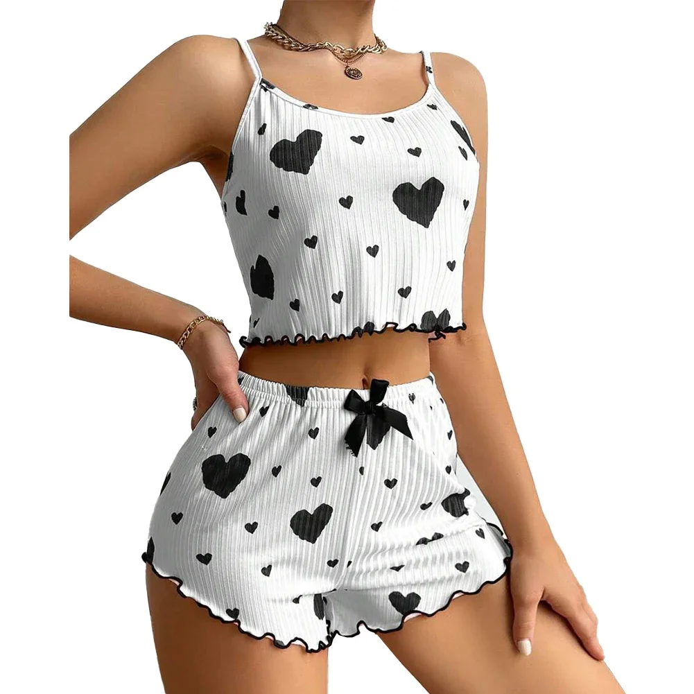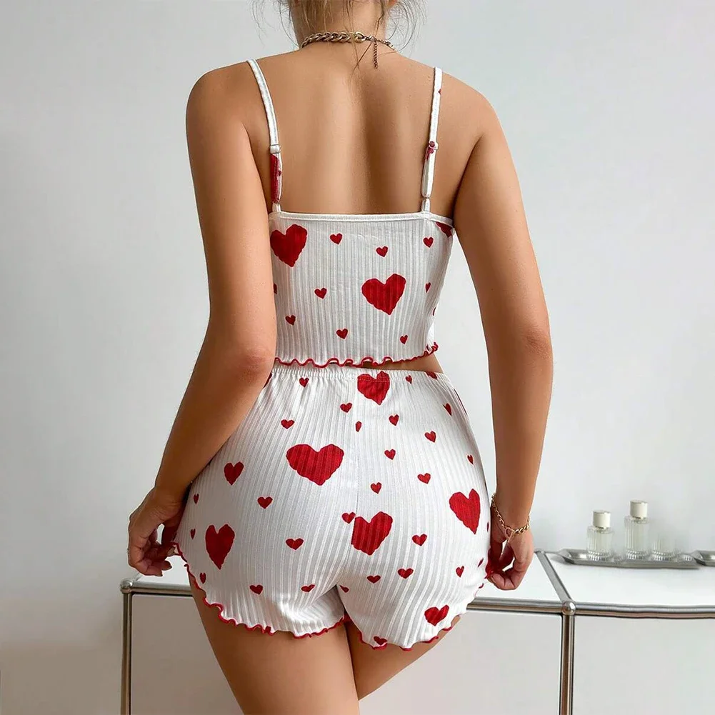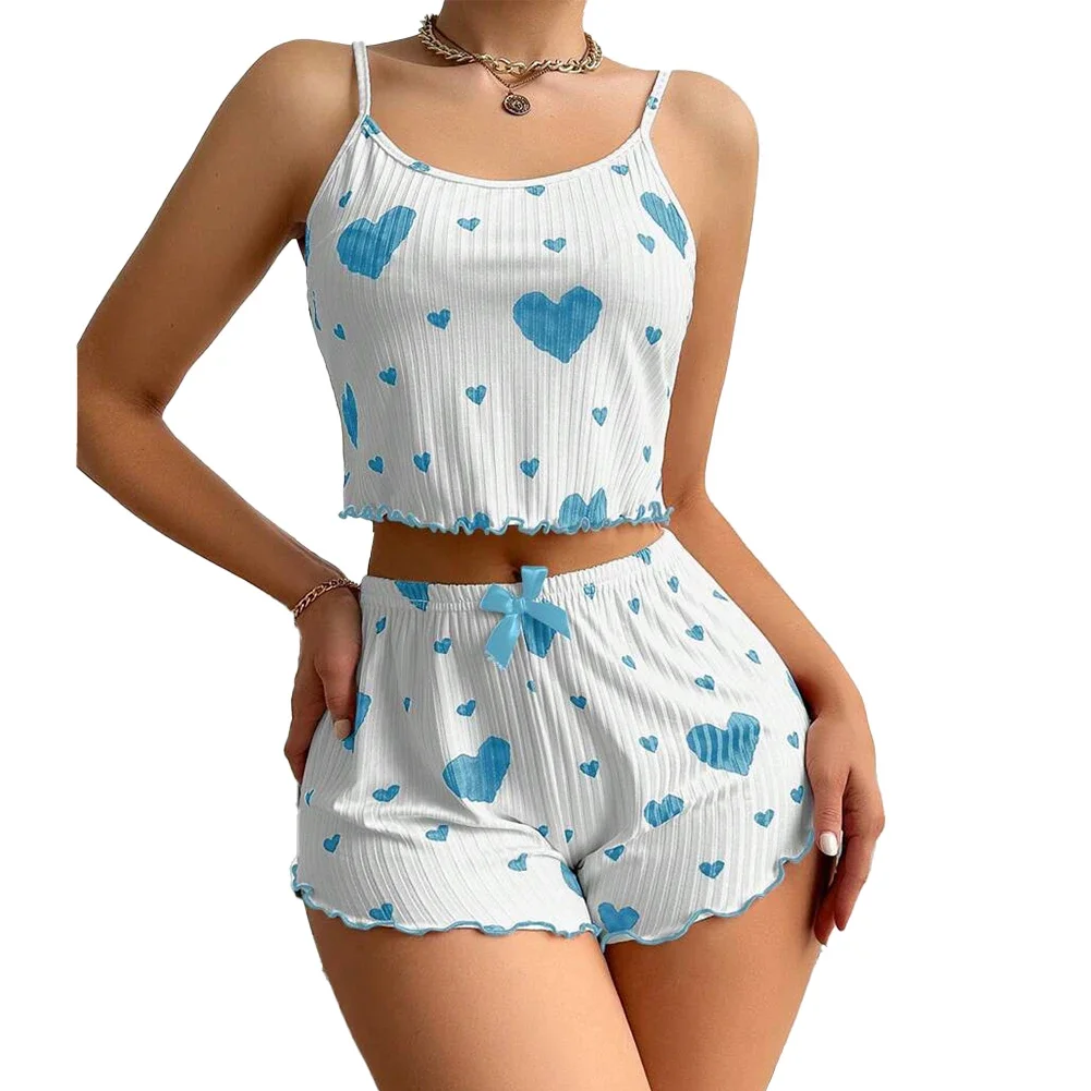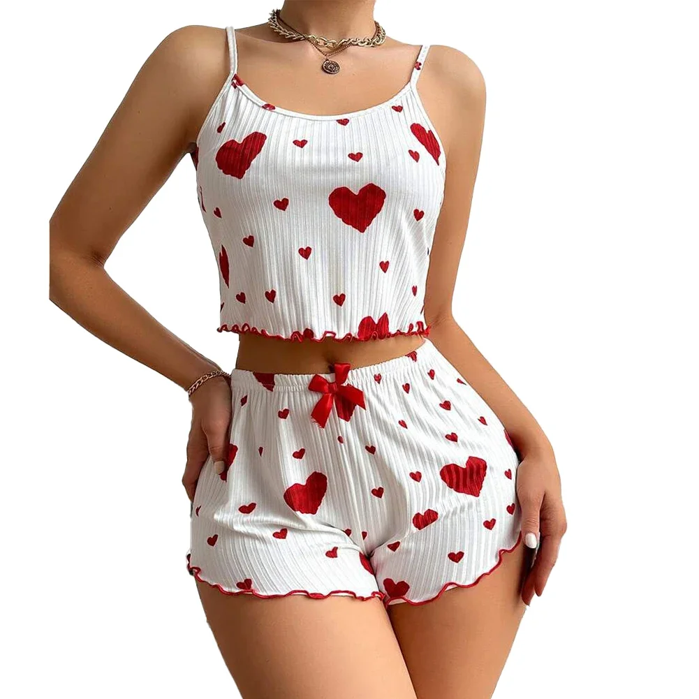Women Home Wear Heart Print Suspenders Shorts Casual Pajamas Suits Summer Comfortable Outwear Homewear Set