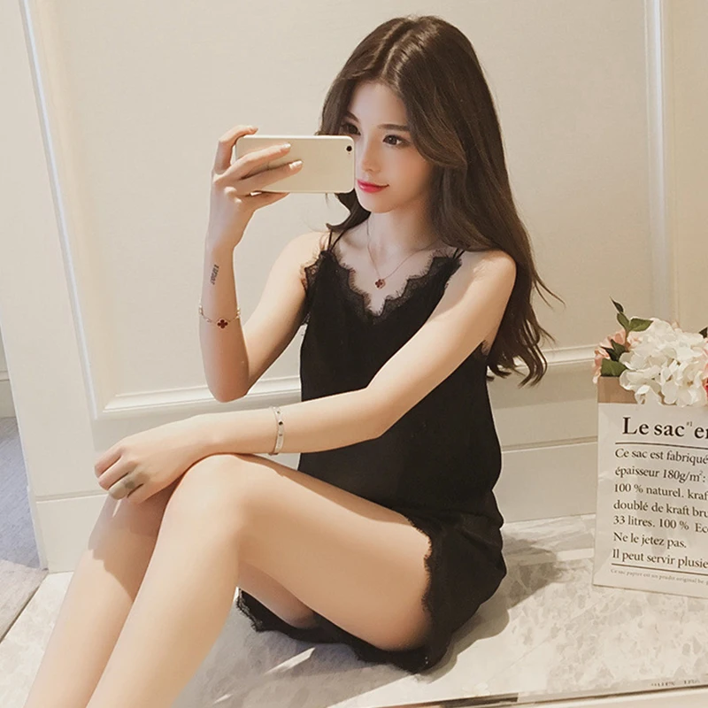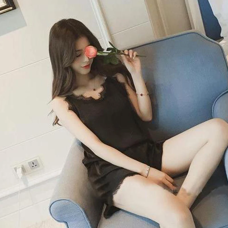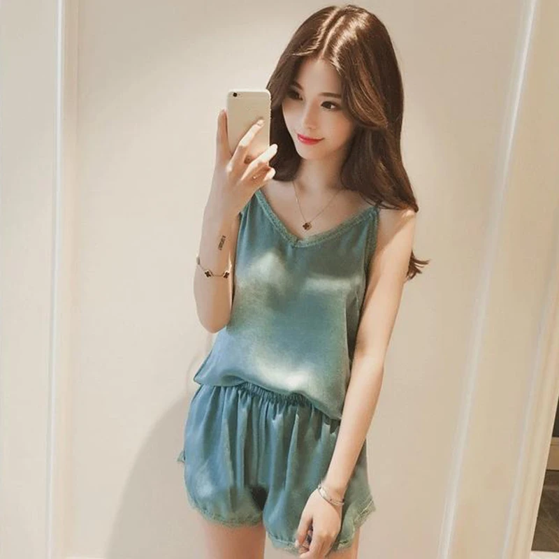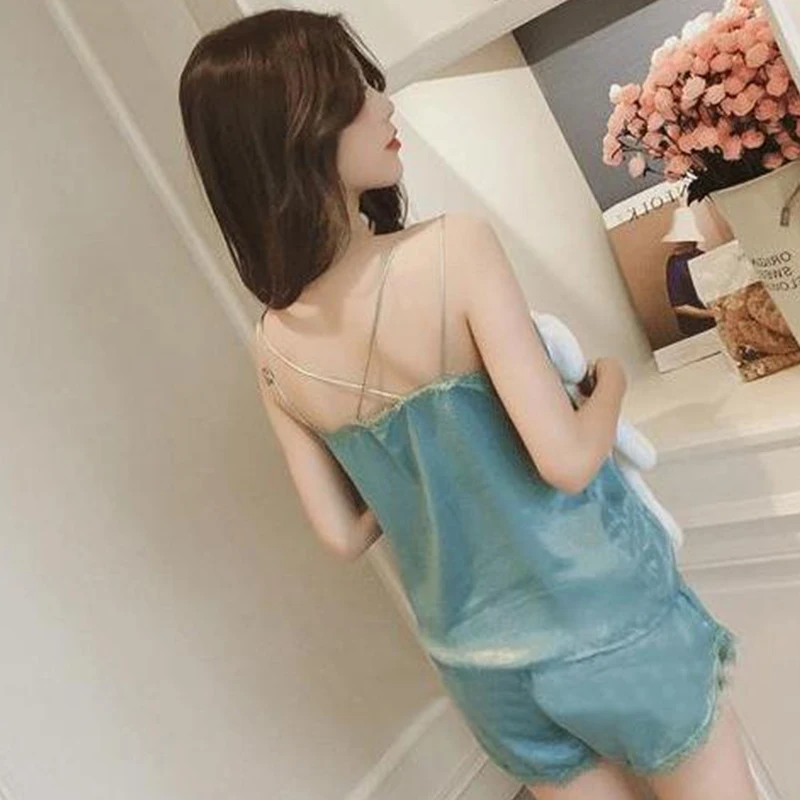 Satin Sexy Casual Lace Patchwork Camisole Shorts Pajamas Two-Piece Set