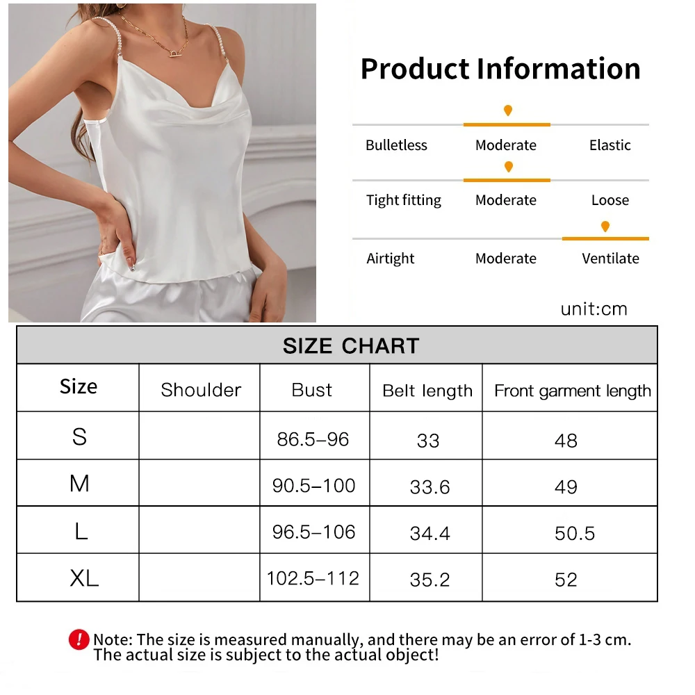 Name | Women's Fashion Solid Color Satin Pajama Tops V Neck Cami Tops With Beads Shoulder Strap Comfortable Sleep and Lounging Homewear |
