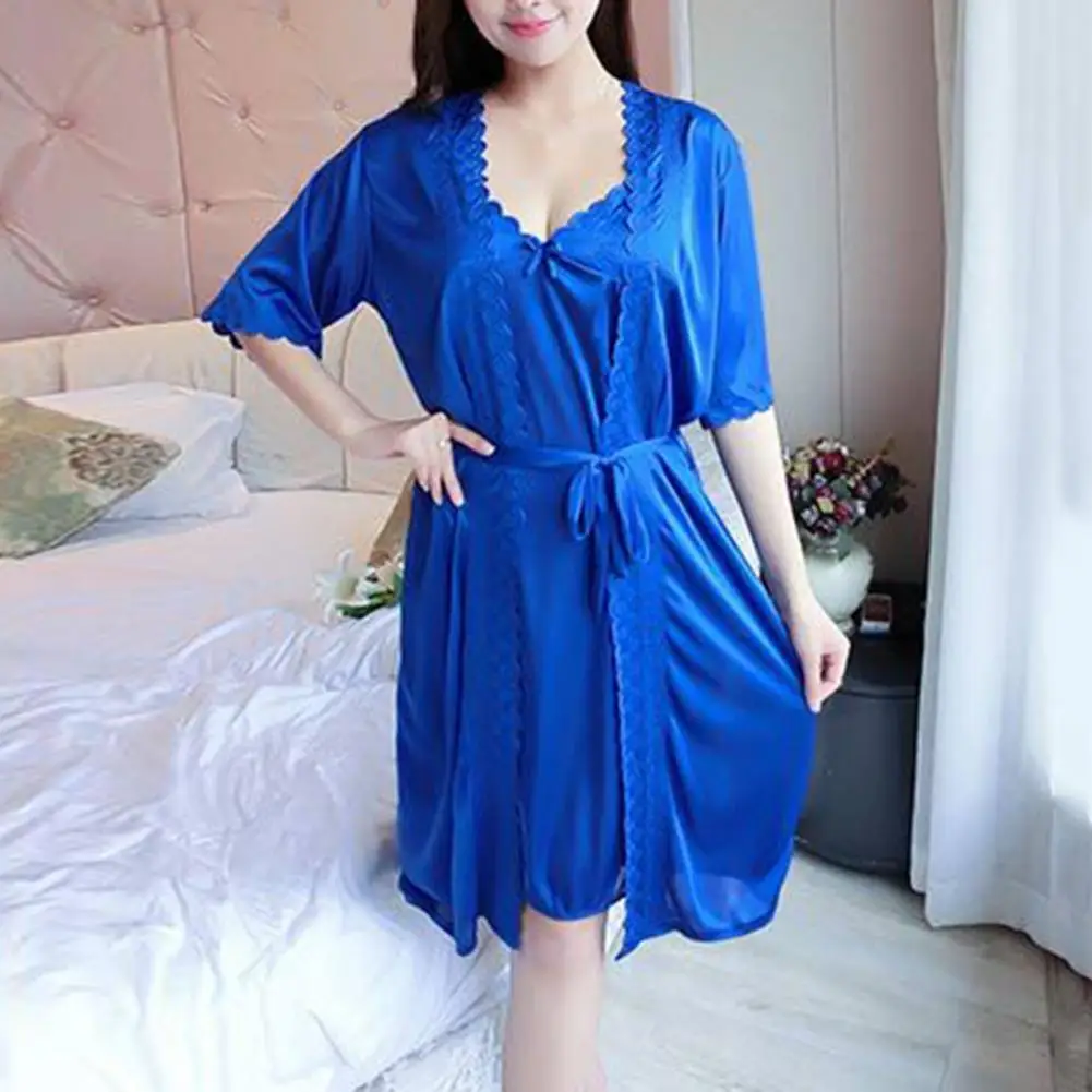 2024 Sexy V Neck Nightdress Sleep Wear Night Shirt Home Dress Nightgown Princess Sleepwear Ladies Nightdres Dress + Outwear