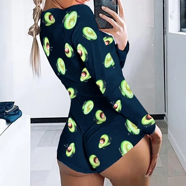 Summer Ladies Pajamas Jumpsuit Sexy Women Bodysuit Long Sleeve Deep V Neck Bodycon Stretch Leotard Button Short Romper
