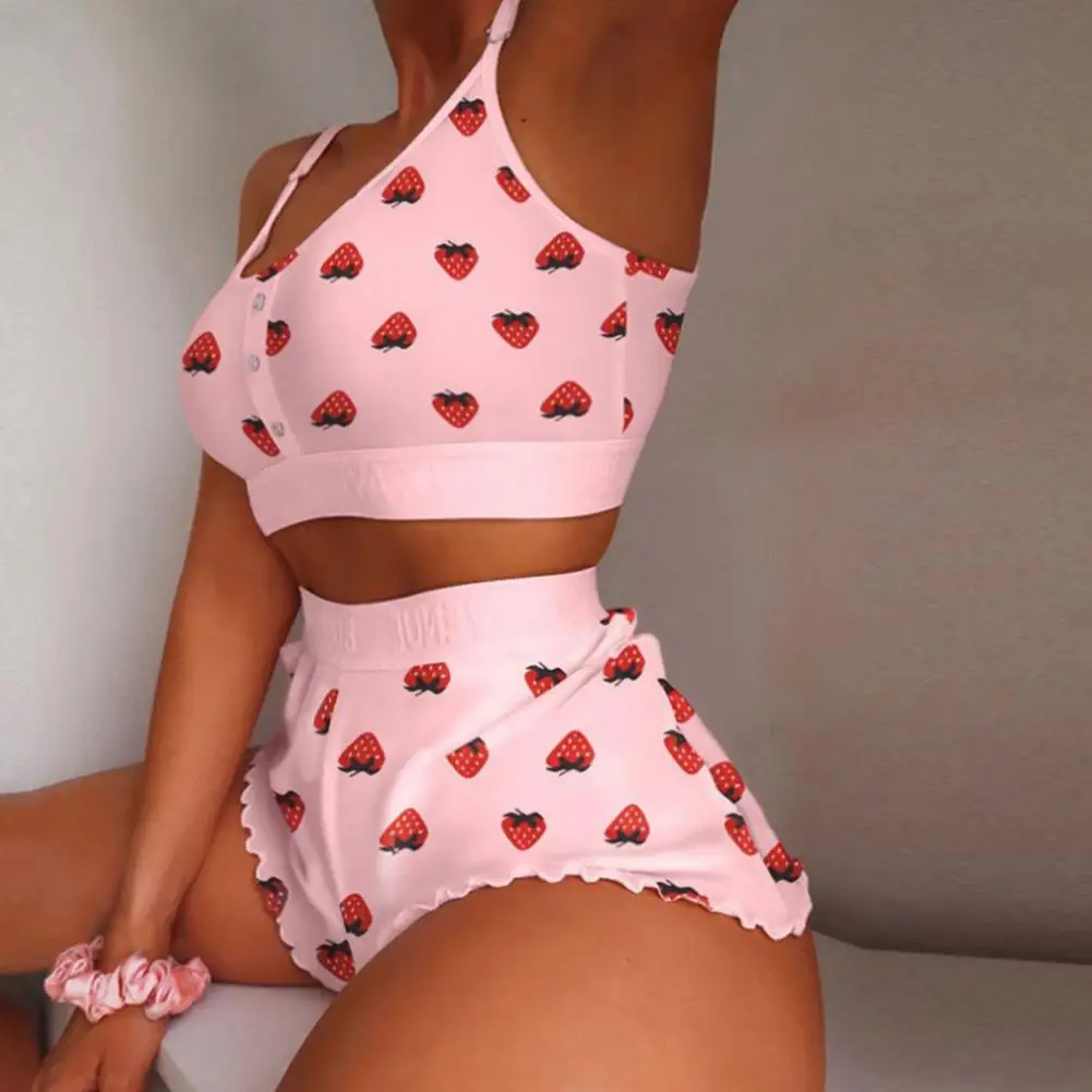 Two-piece Pajamas Stylish Women's Pajama Set Sleeveless Printed Top High Waist Shorts Comfortable Homewear for Summer Casual