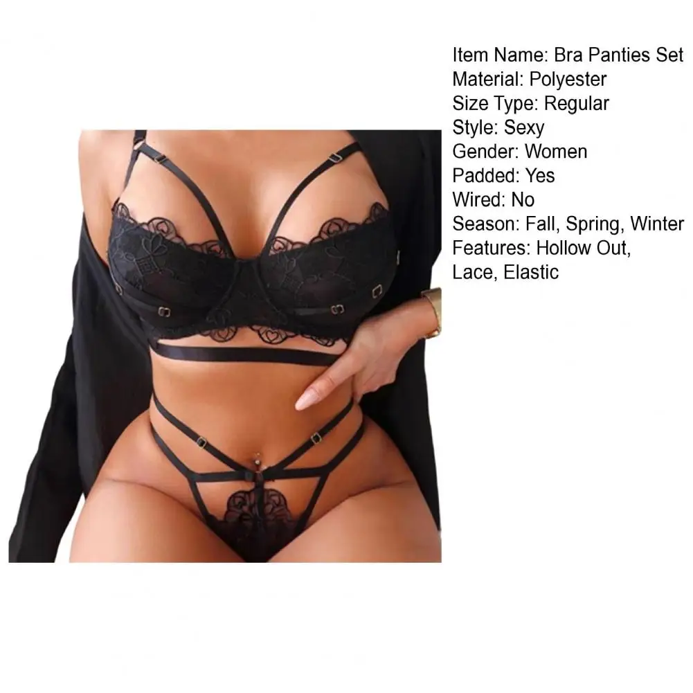 2 Pcs/Set Bra Panties Set Hollow Out Lace Multi Adjustable Strap Thin Breathable High Waist Wedding Night Honeymoon Underwear