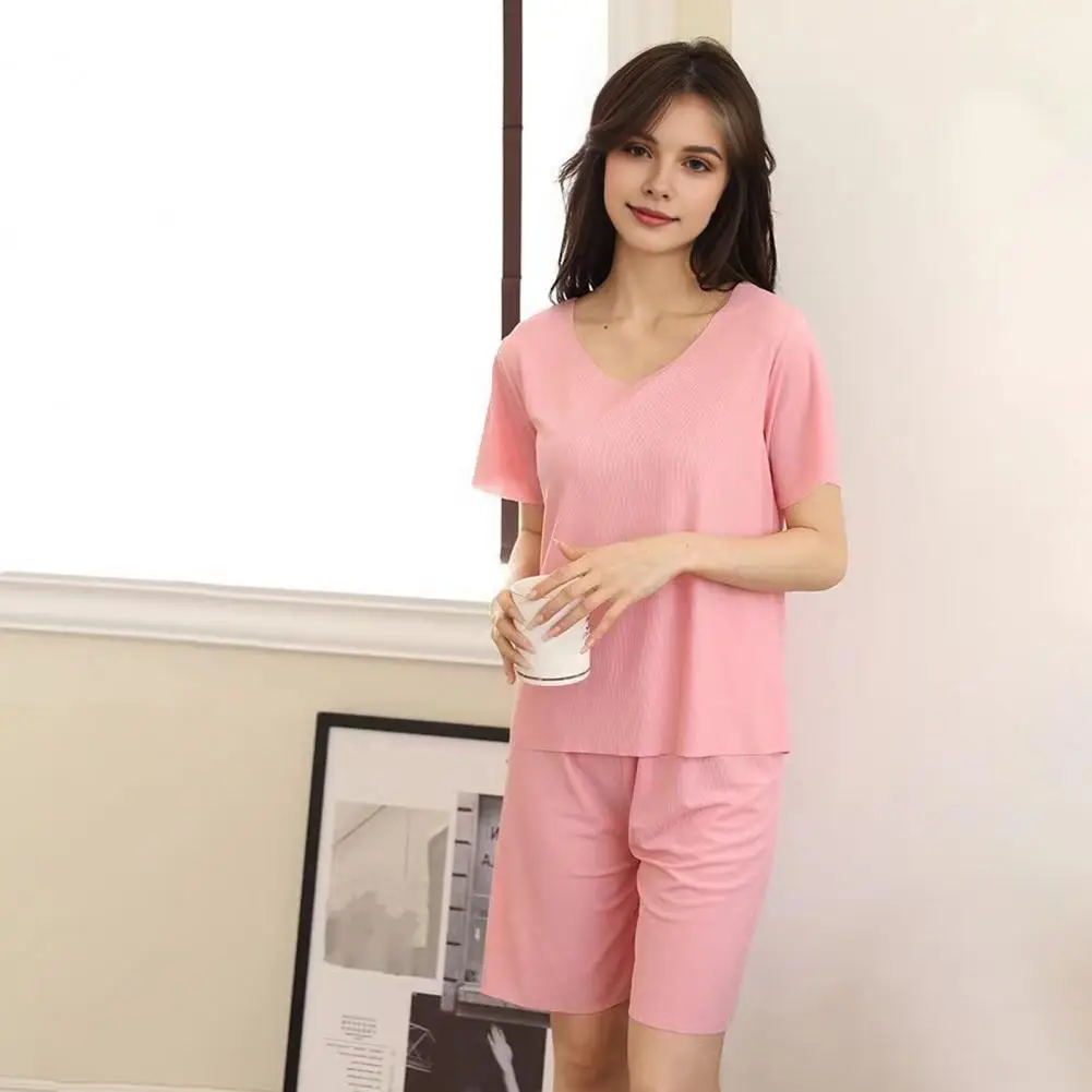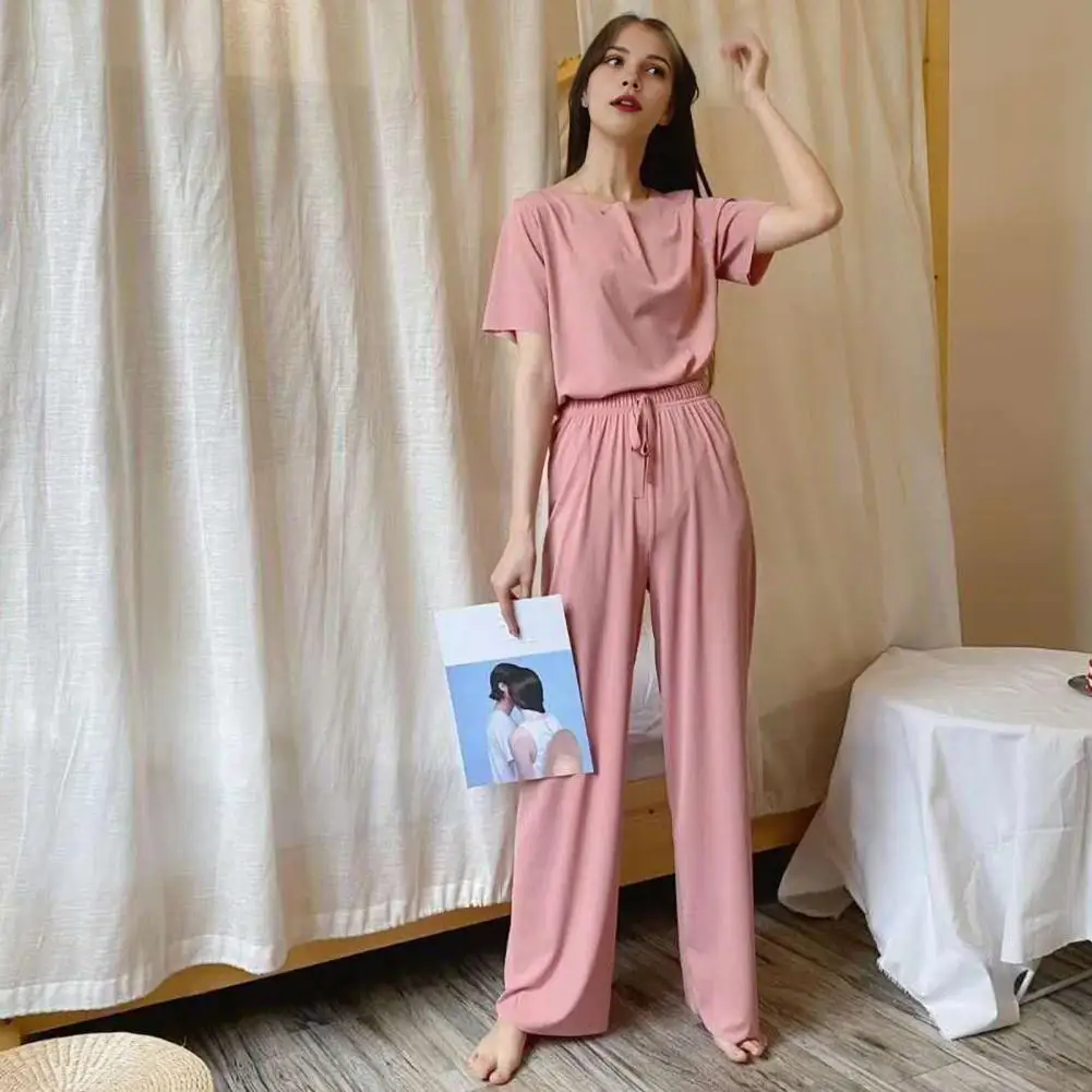 Women Pajama Set Stylish 3-piece Women's Summer Pajama Set O Neck T-shirt Elastic Waist Shorts Wide Leg Pleated Pants