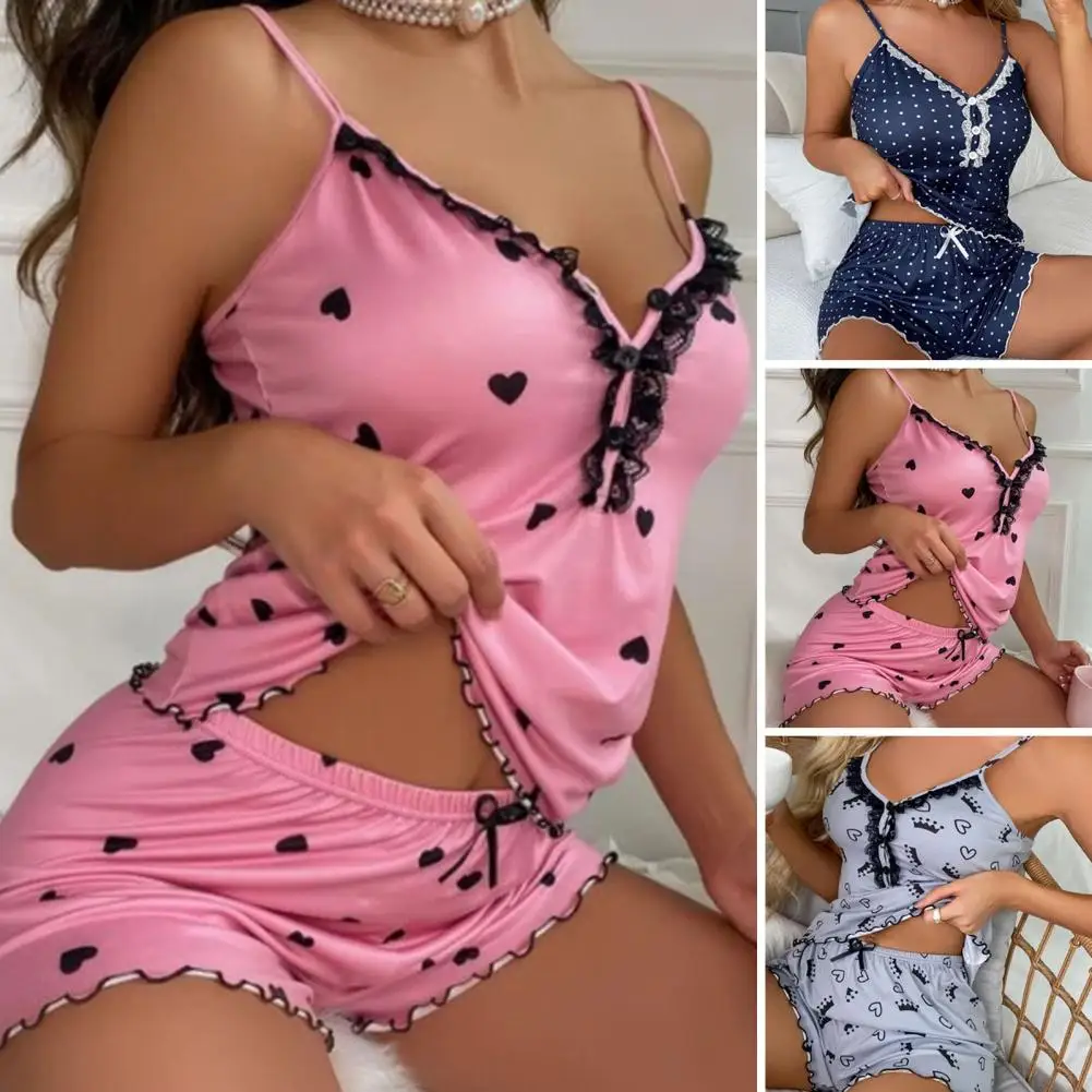 Name | 2Pcs/Set Nightwear Set Chic Soft Sleepwear Set Women Sexy Sling Home Clothes Sleepwear Homewear |