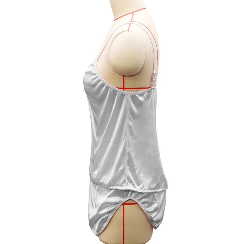 Pure Color Sexy Sleepwear Pajama Set For Women Satin Silk V-Neck Sleeveless Pyjamas Cute Shorts Suit Nightwear -1pcs
