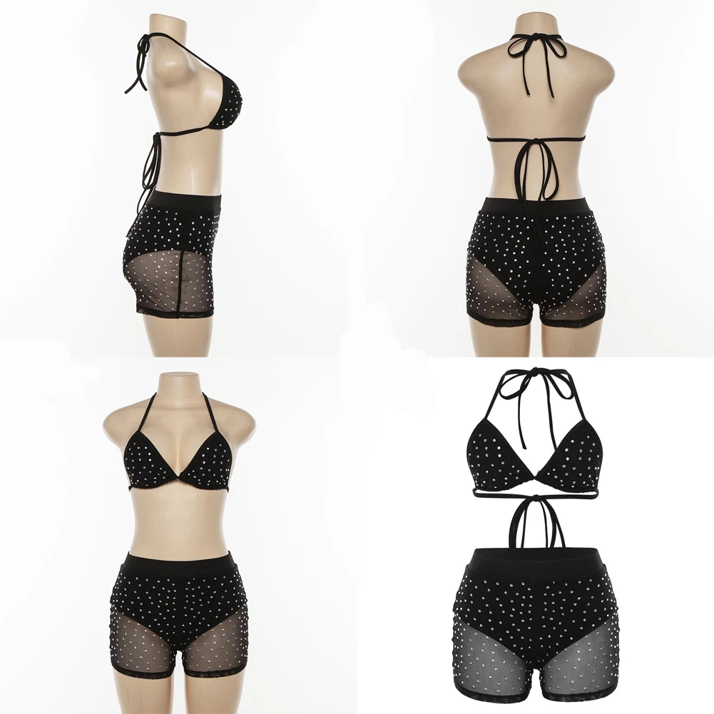 Name | 2 Pieces Set Women Sleepwear Pajama Sets 2022 New Sequins Bandage Women Fishnet Patchwork Nightwear Lingerie PJS Set |
