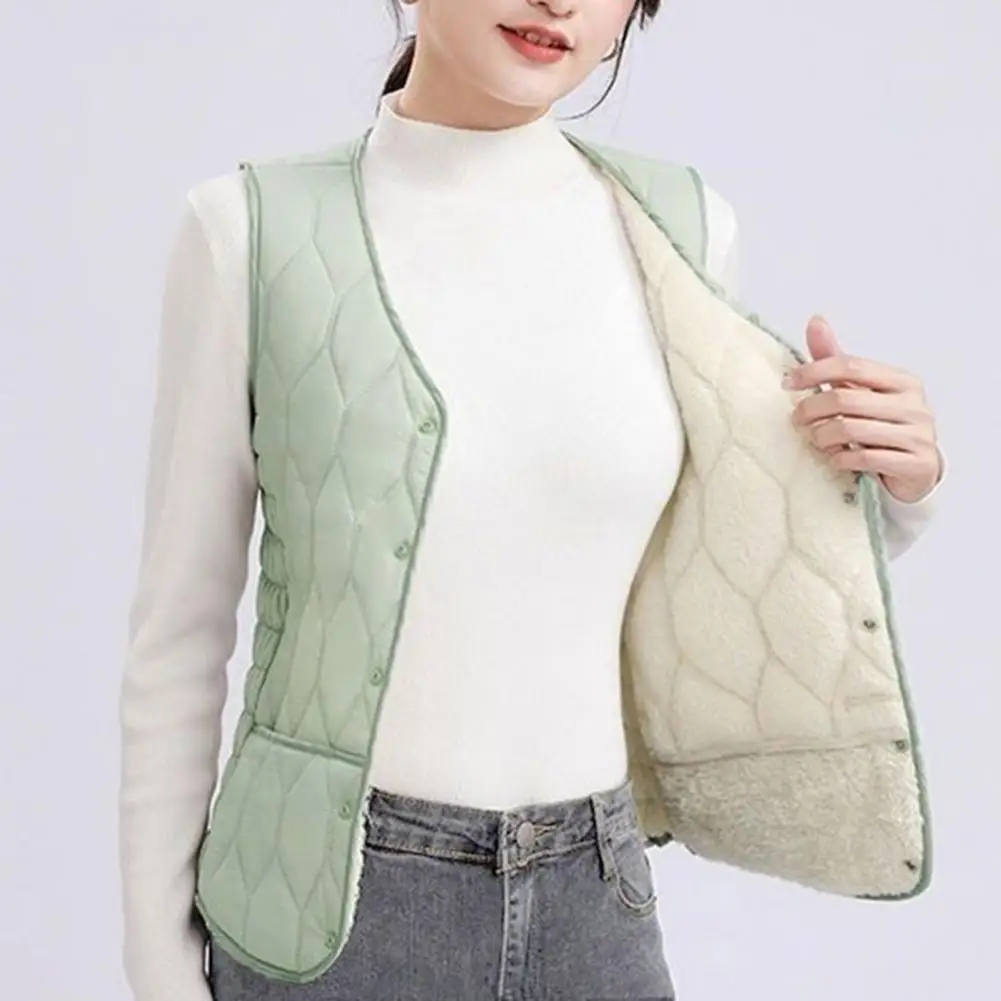 Women Lightweight Coat Women Vest Jacket Plus Size Women's Plush Vest Coat with V Neck Pockets Warm Windproof Winter for Wear