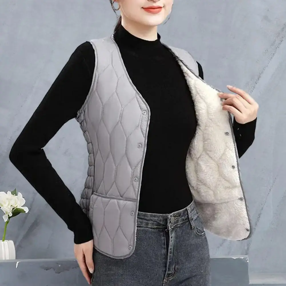 Women Vest Coat Autumn Winter Sleeveless Solid Color Padded Plush Plus Size Warm Pockets Cardigan Casual Waistcoat Jacket Coat