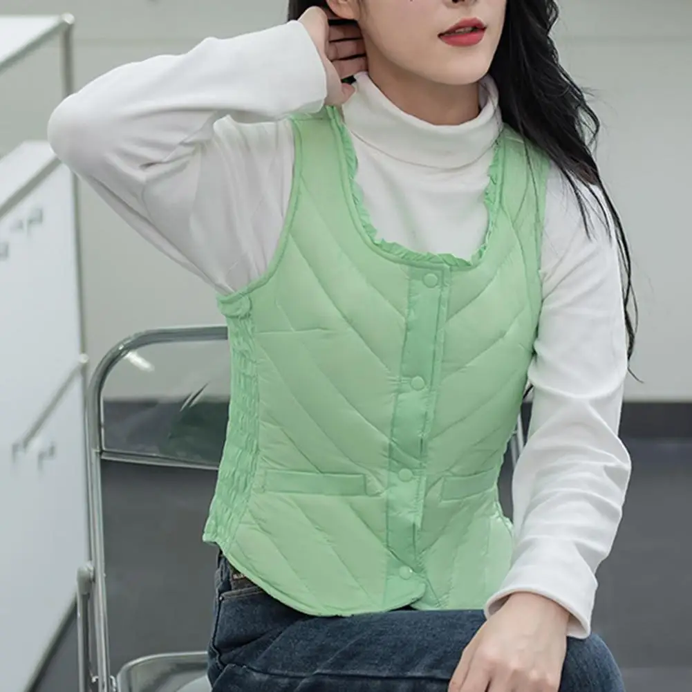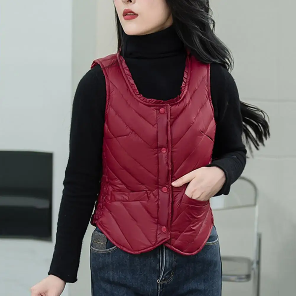 Women Packable Vest Cozy Padded Plush Women's Vest for Fall Winter Sleeveless U Neck Waistcoat with Soft Warm Windproof Design