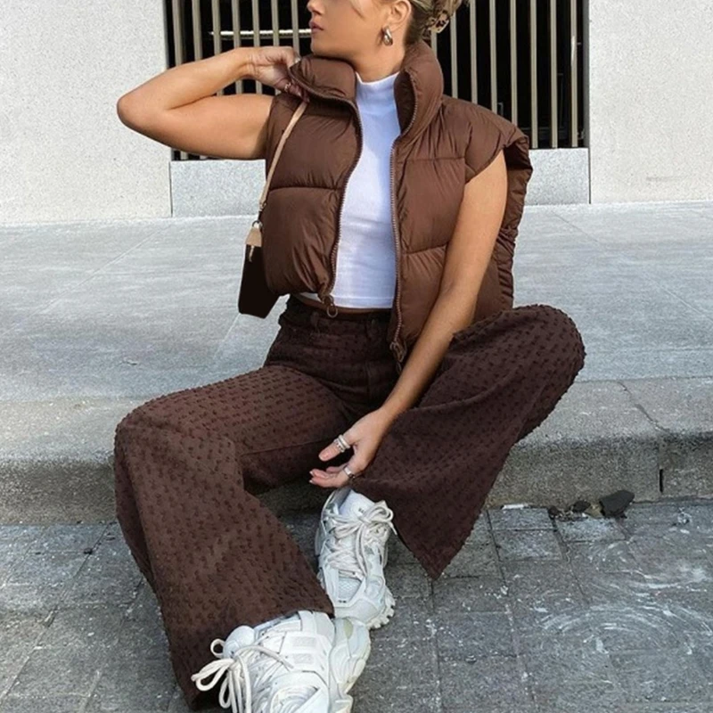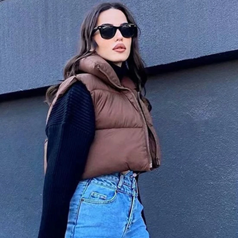 Women's Stand Collar Crop Puffer Vest Lightweight Sleeveless Winter Warm Vest