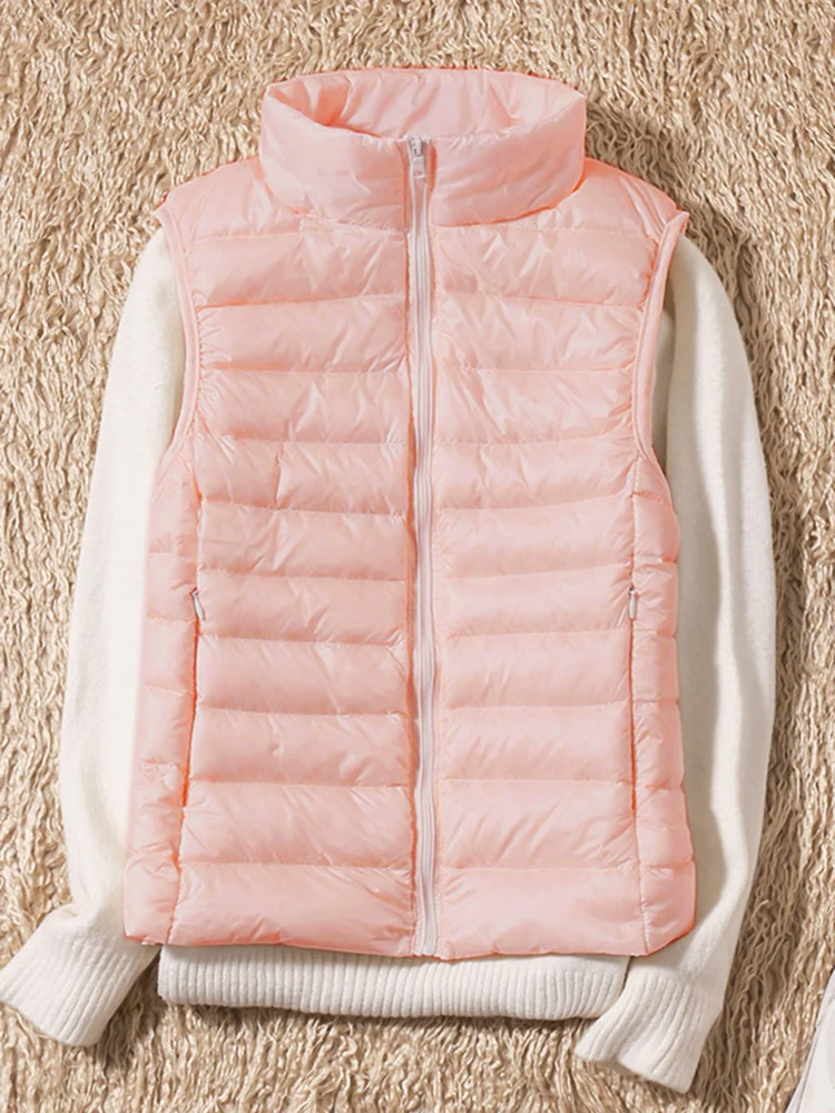 Light Duck Down Puffer Coat Women 2023 Autumn Vests Warm Duck Down Female Casual Jacket Stand Collar Pocket Lady Slim Jacket