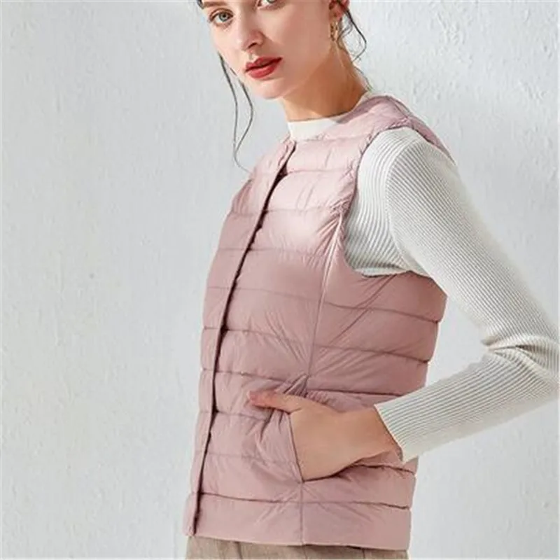 90% Ultra Light White Duck Down Women Vest Thin Coat Women Duck Down Sleeveless Jacket V Collar Or O Collar Coat