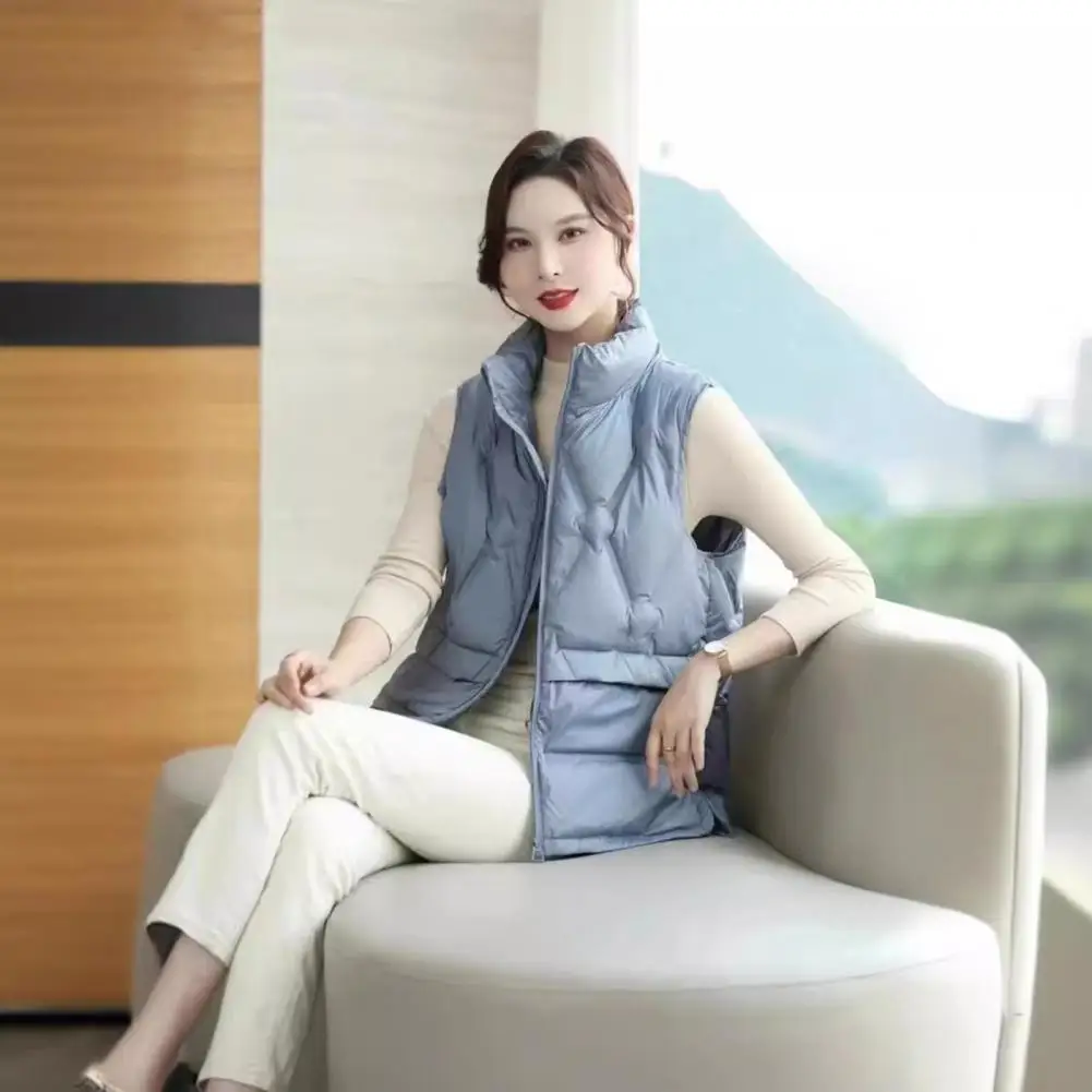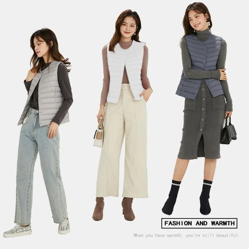 Women Warm Puffer Vest Women's Sleeveless Padded Down Coat for Fall Winter Outdoor Work Single-breasted Round Neck Heat