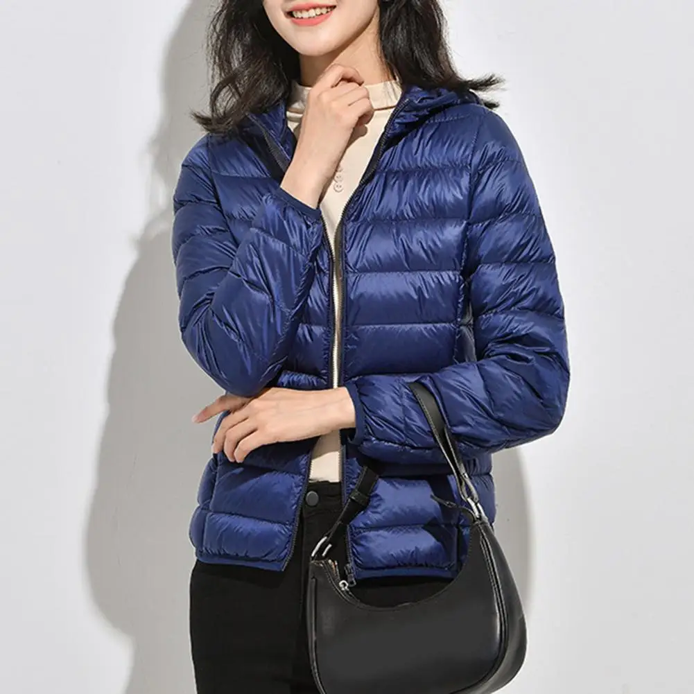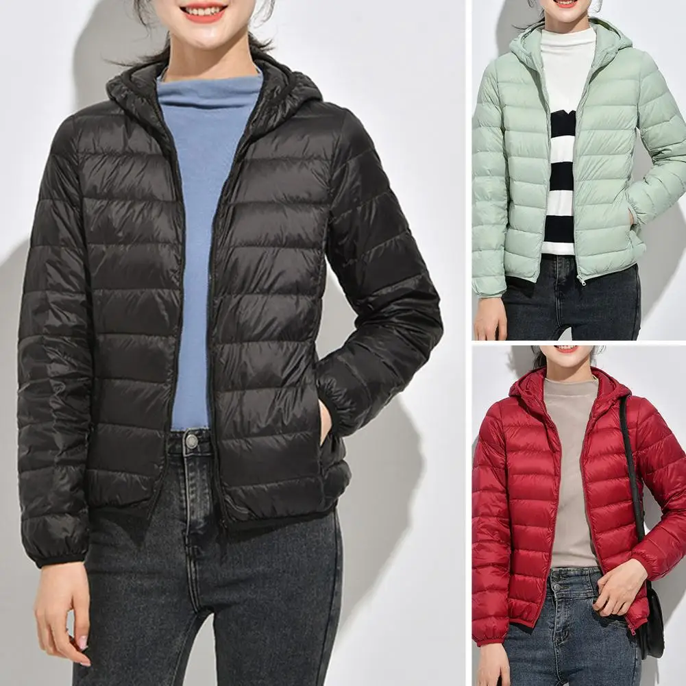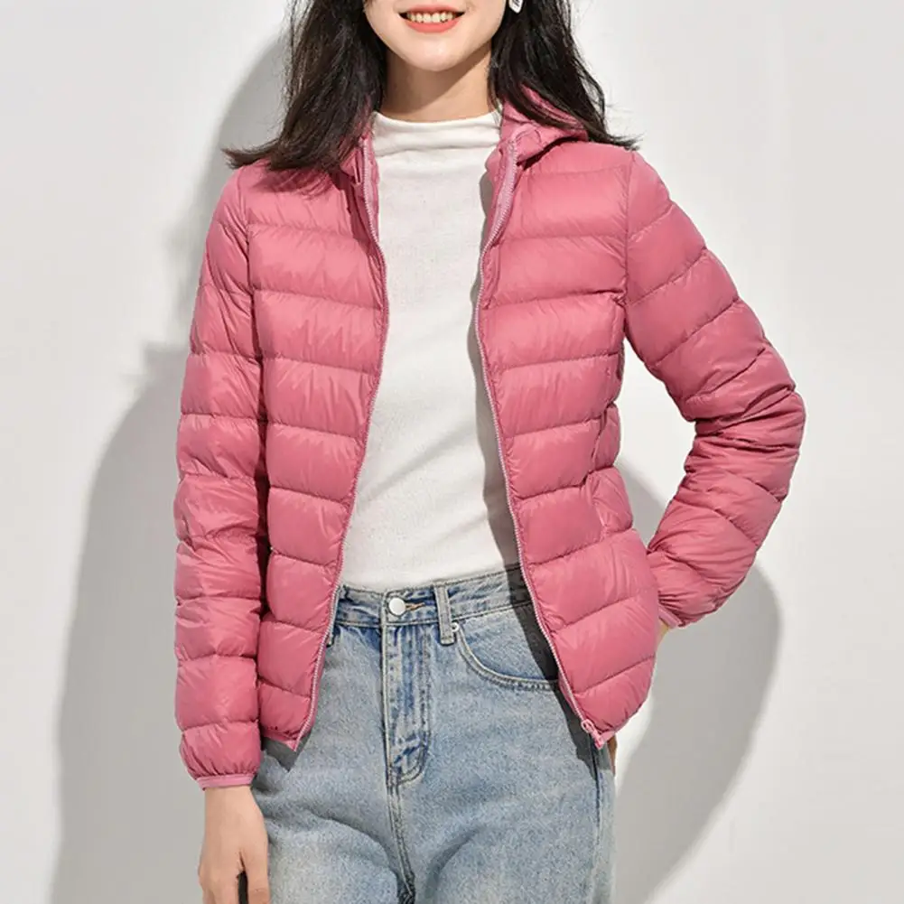 Simple Puffer Jacket Long Sleeve Warm Down Jacket Winter Women Ultra Lightweight Hooded Puffer Coat