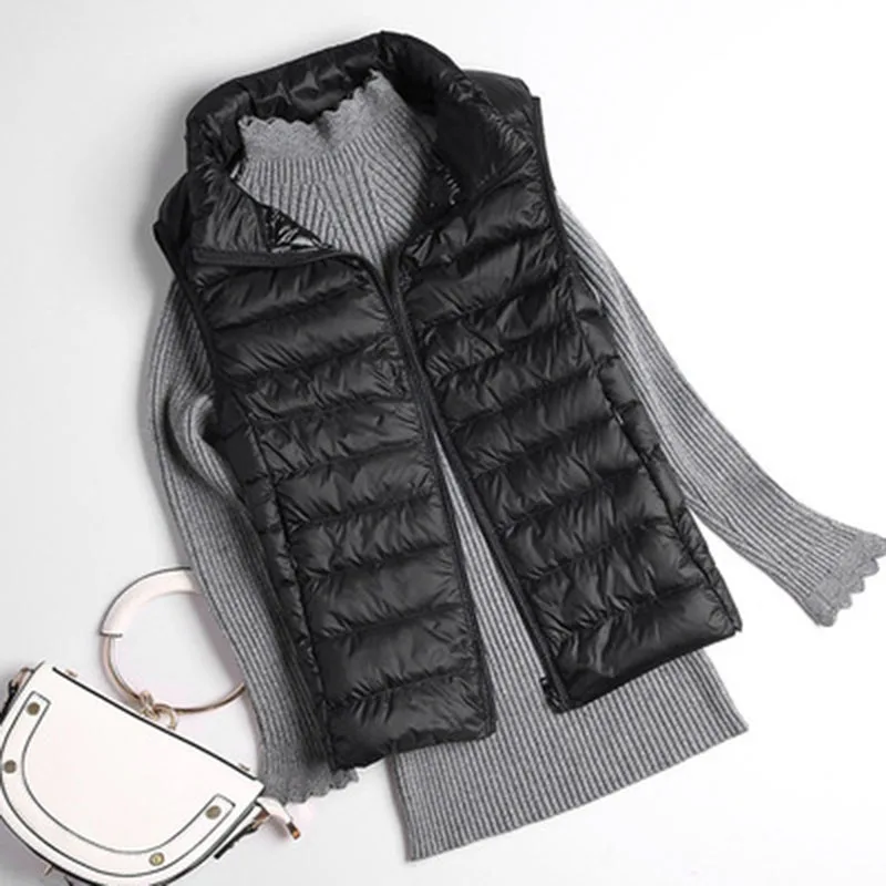 Autumn Winter Stand collar Sleeveless Down Vest Women Ultra Light 90% White Duck Down Vest Slim Jacket Windproof Warm Waistcoat