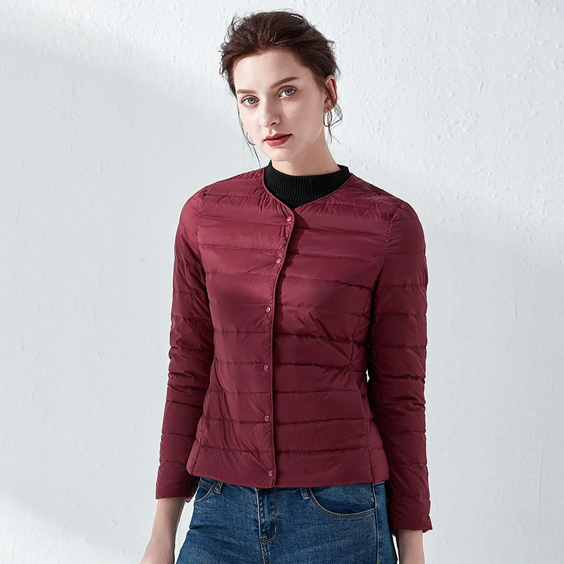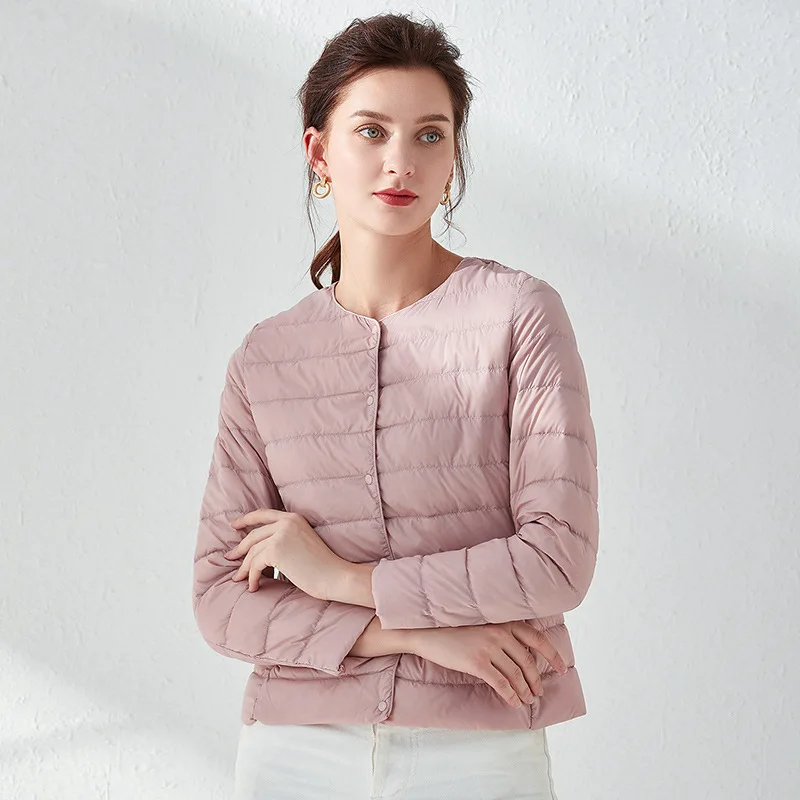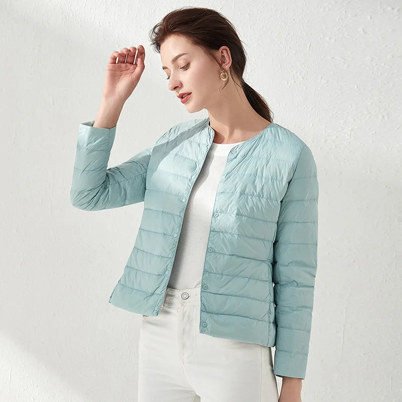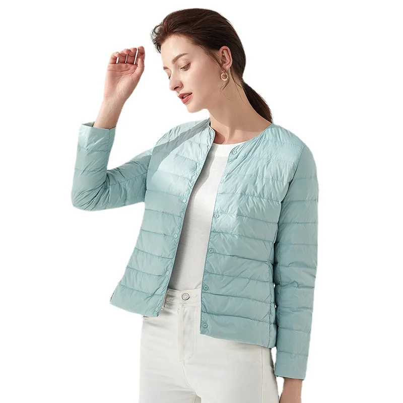 2024 Women's Autumn and Winter New Lightweight round Neck down Jacket Slim Slimming Collarless down Jacket